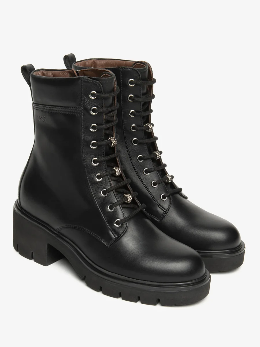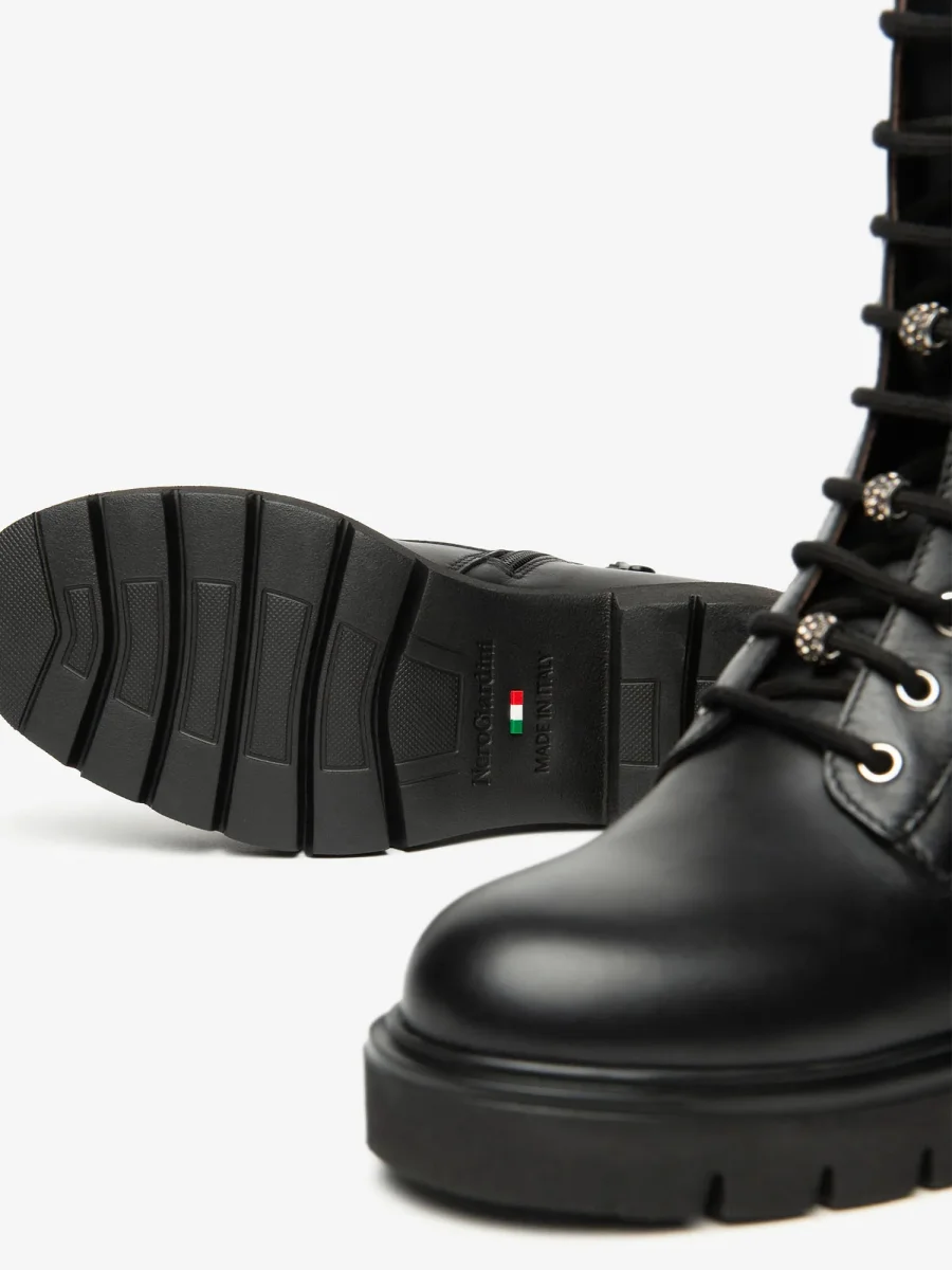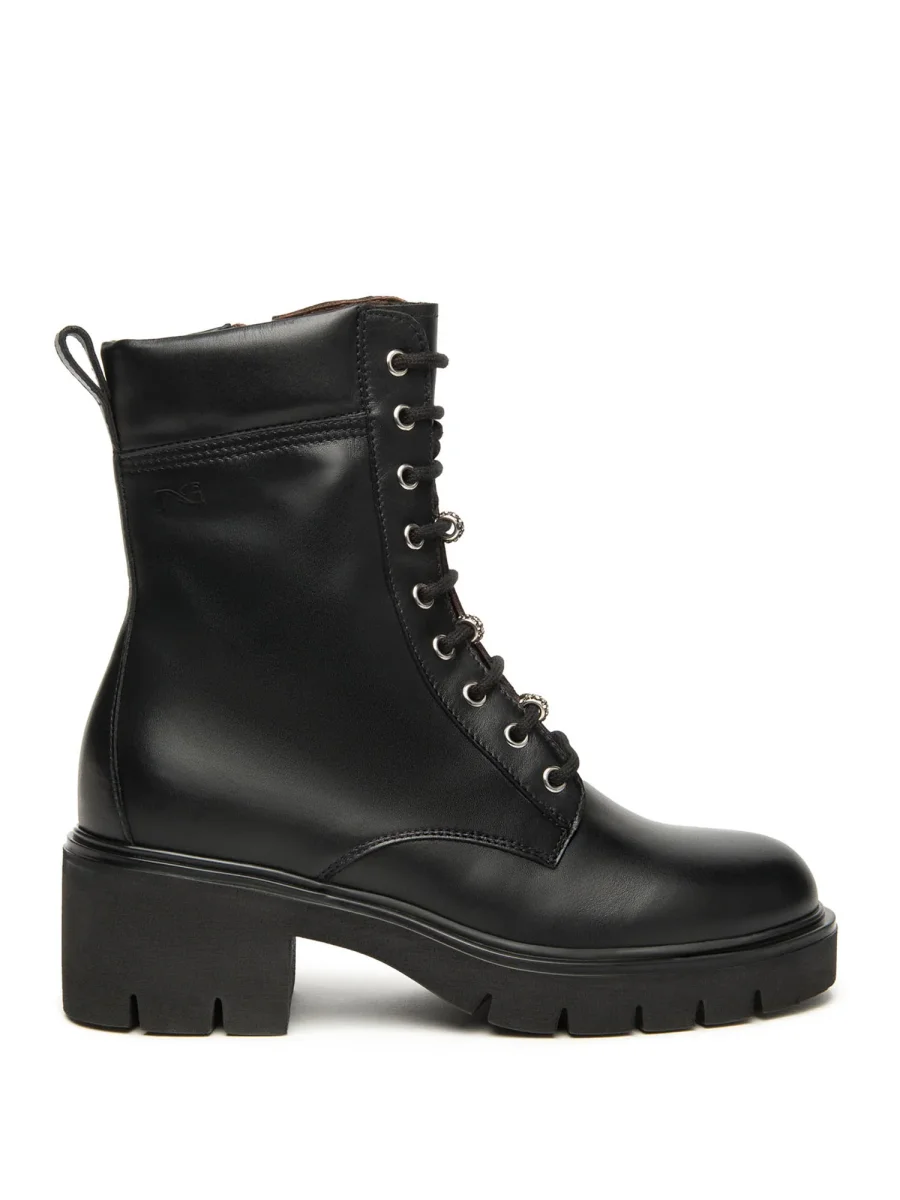Eleganti, decisi e perfetti per affrontare la stagione fredda con stile, questi anfibi da donna NeroGiardini, sono la sintesi ideale tra design contemporaneo e qualità artigianale. Realizzati in pelle, con interno in pelle e tessuto, offrono un comfort superiore e una calzata comoda. Il tacco a blocco aggiunge slancio alla figura senza rinunciare alla stabilità. La doppia chiusura con lacci e zip laterale, assicura praticità nella calzata, mentre la suola in gomma garantisce aderenza e resistenza in ogni condizione. La soletta estraibile, dotata di tecnologia avanzata, si adatta perfettamente alla forma del piede offrendo ammortizzazione e un alto livello di benessere anche dopo molte ore.