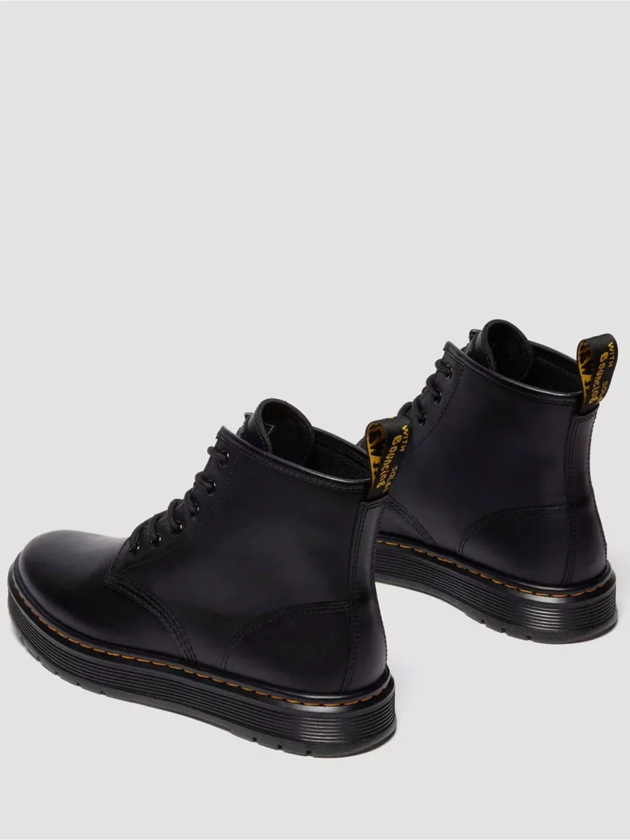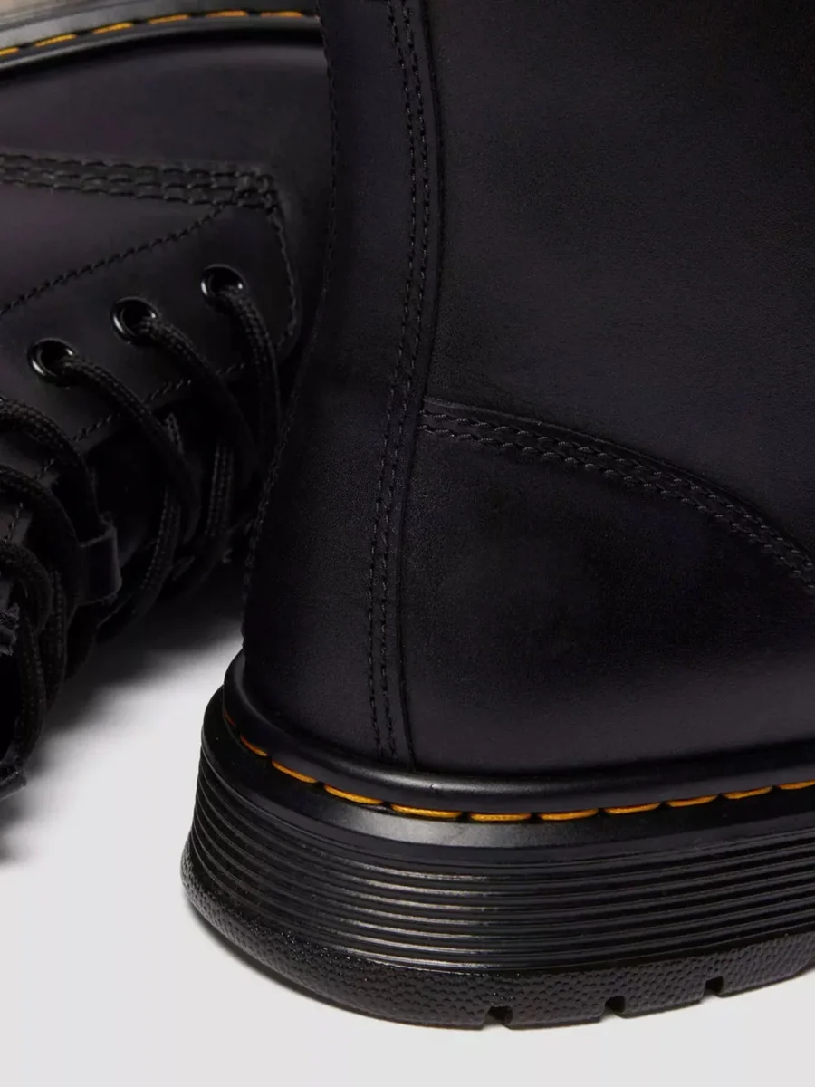 Realizzato in pelle cerata Lusso, leggermente testurizzata e morbida al tatto, si distingue per la sua vestibilità comoda fin dal primo utilizzo. Il design è completato dai classici dettagli Dr. Martens: la cucitura gialla a contrasto, il tirante posteriore “AirWair” e la suola iconica con cuscinetto d’aria, che garantisce ammortizzazione e aderenza su diverse superfici.