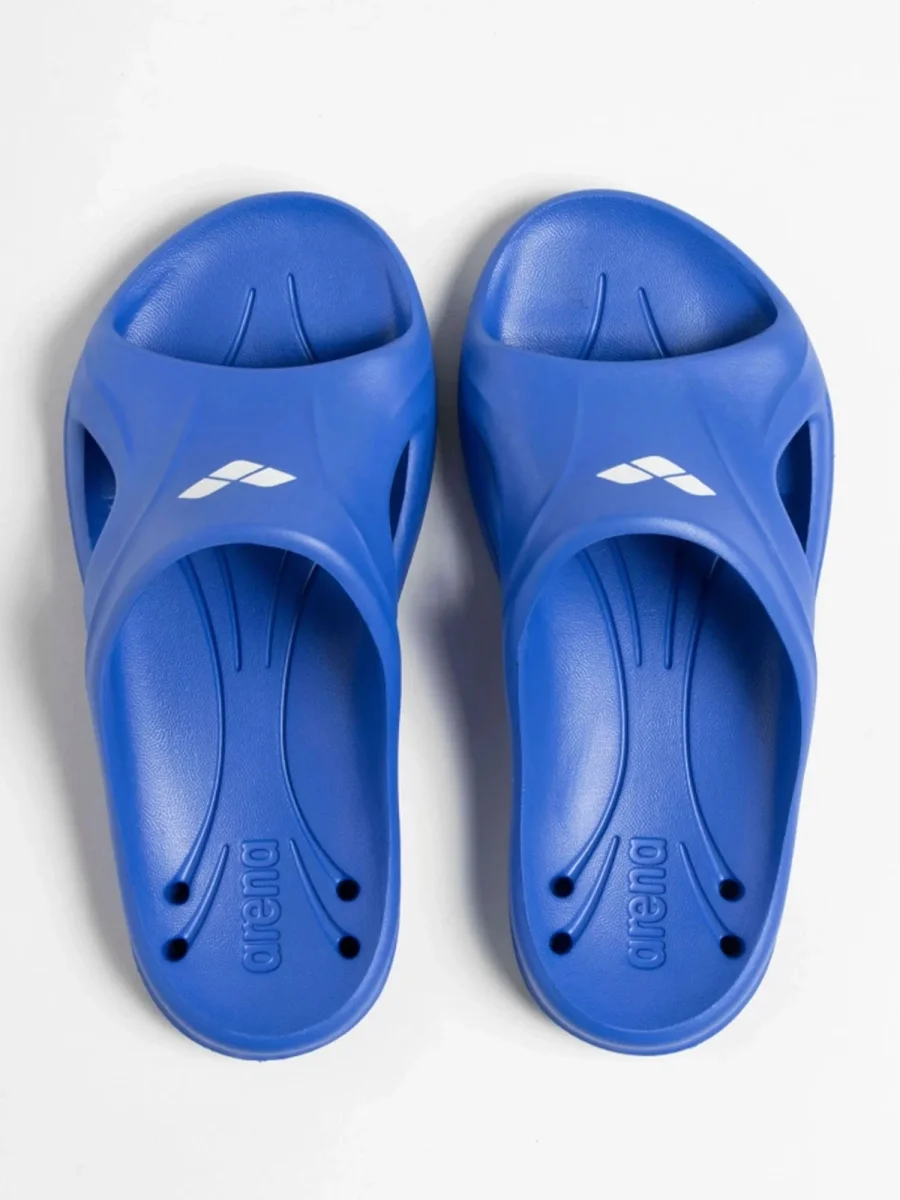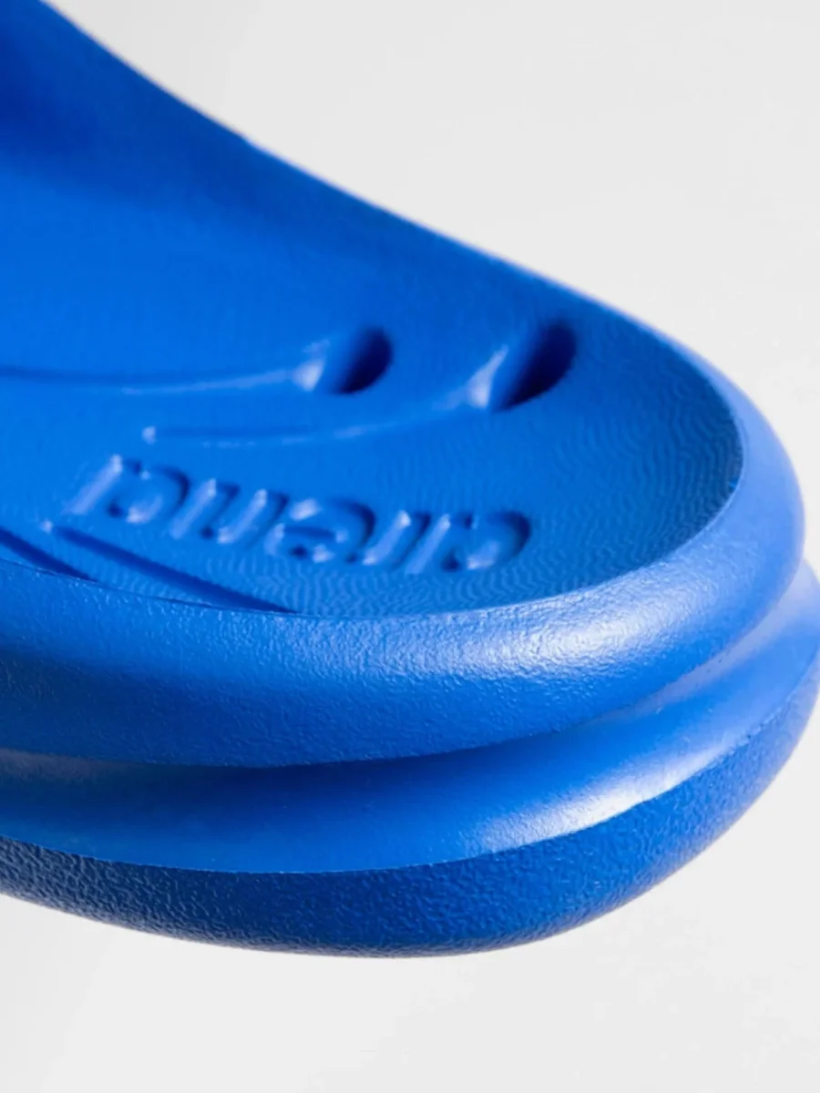 Le ciabatte Hydrosoft II di Arena per bambini, sono realizzate in materiale ipoallergenico e progettate per garantire comfort e sicurezza. I fori di drenaggio e le scanalature laterali mantengono i piedi asciutti, mentre la speciale suola assicura una calzata stabile, evitando scivolamenti all’interno.
