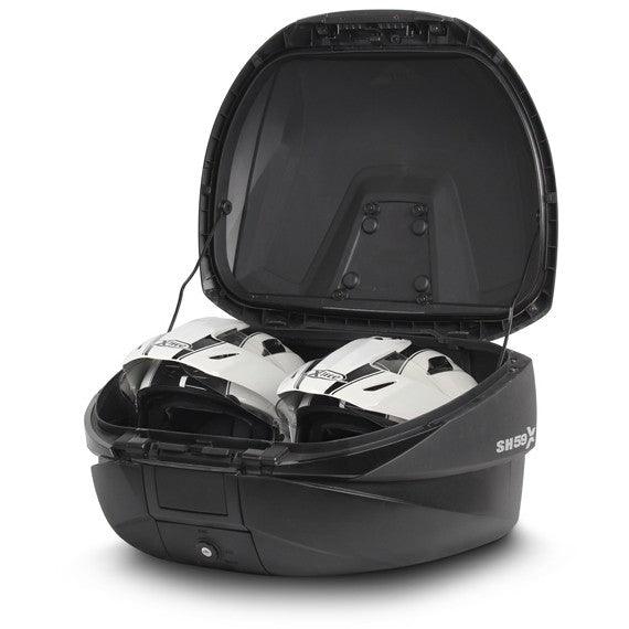 Capacità di stoccaggio: Con una capacità massima di 59 litri, il bauletto SH59X può ospitare comodamente due caschi enduro, rendendolo ideale per le uscite in coppia o per i viaggi di lunga durata.