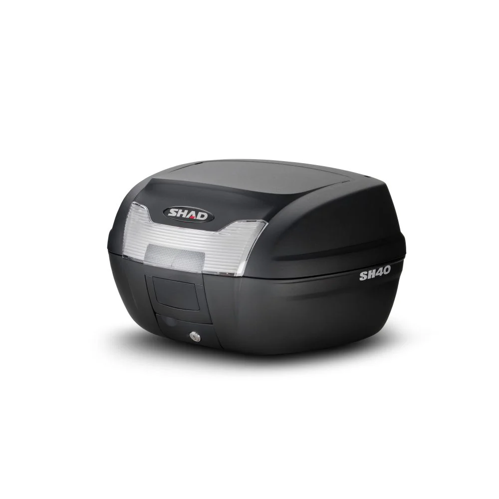 SH40 è un bauletto realizzato in polipropilene rinforzato di alta qualità. Molto robusto e compatto, protegge il carico dagli urti e dalle intemperie. La sua capacità di 40 litri garantisce spazio sufficiente per un casco integrale o due caschi jet.