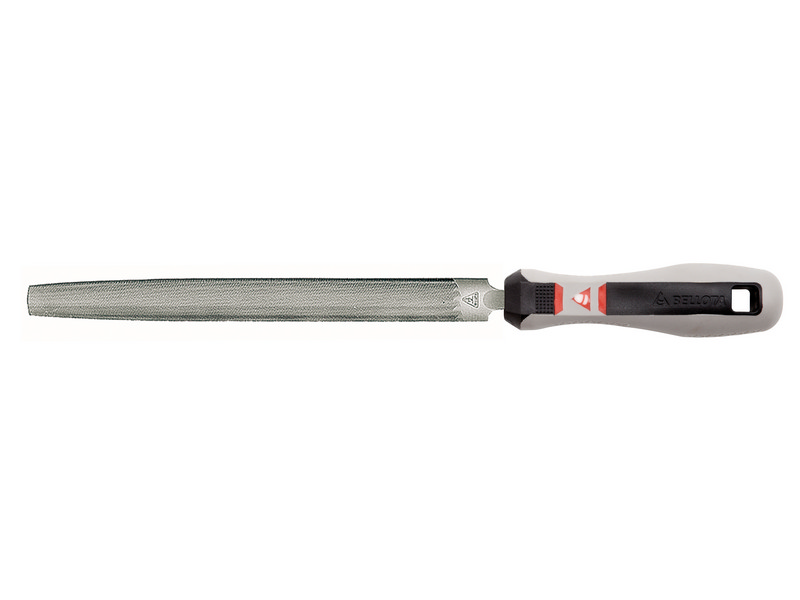 In acciaio speciale di lega di cromo, forgiata, taglio mezzoNLdolce, con manico.