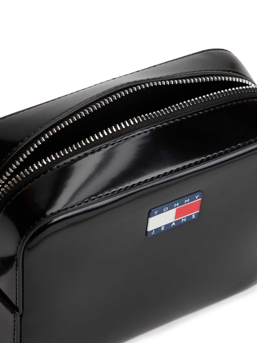 Scopri la borsa a tracolla Tommy Jeans della collezione primavera/estate: un modello camera bag compatto e versatile, realizzato in similpelle nera con logo in rilievo sul davanti. Dotata di tracolla regolabile, interno completamente foderato e chiusura con zip, è l’accessorio ideale per aggiungere un tocco moderno e distintivo ai tuoi look quotidiani e casual-chic.
