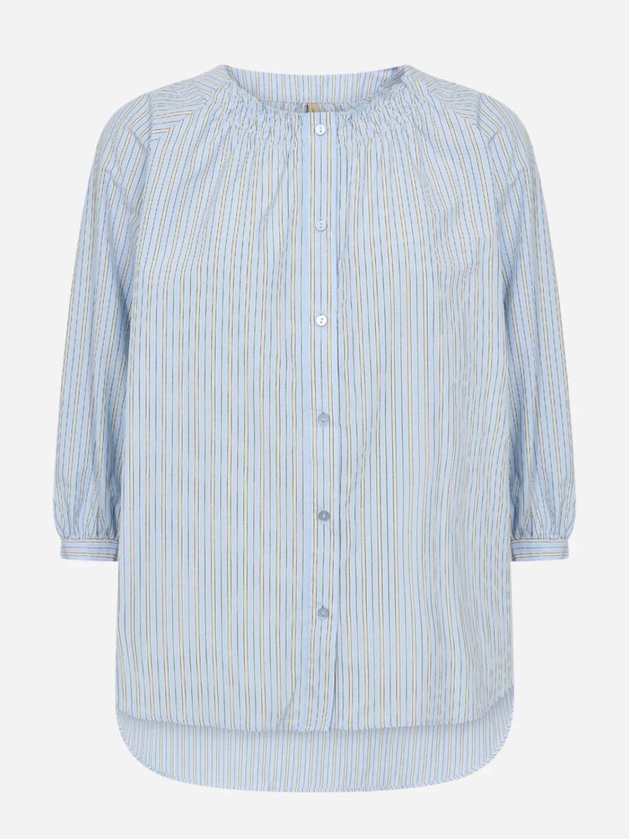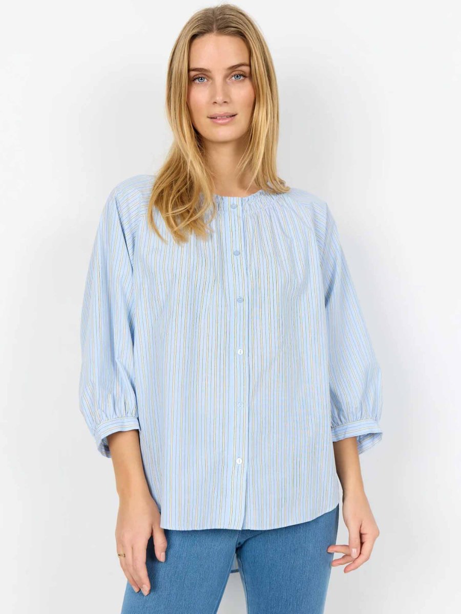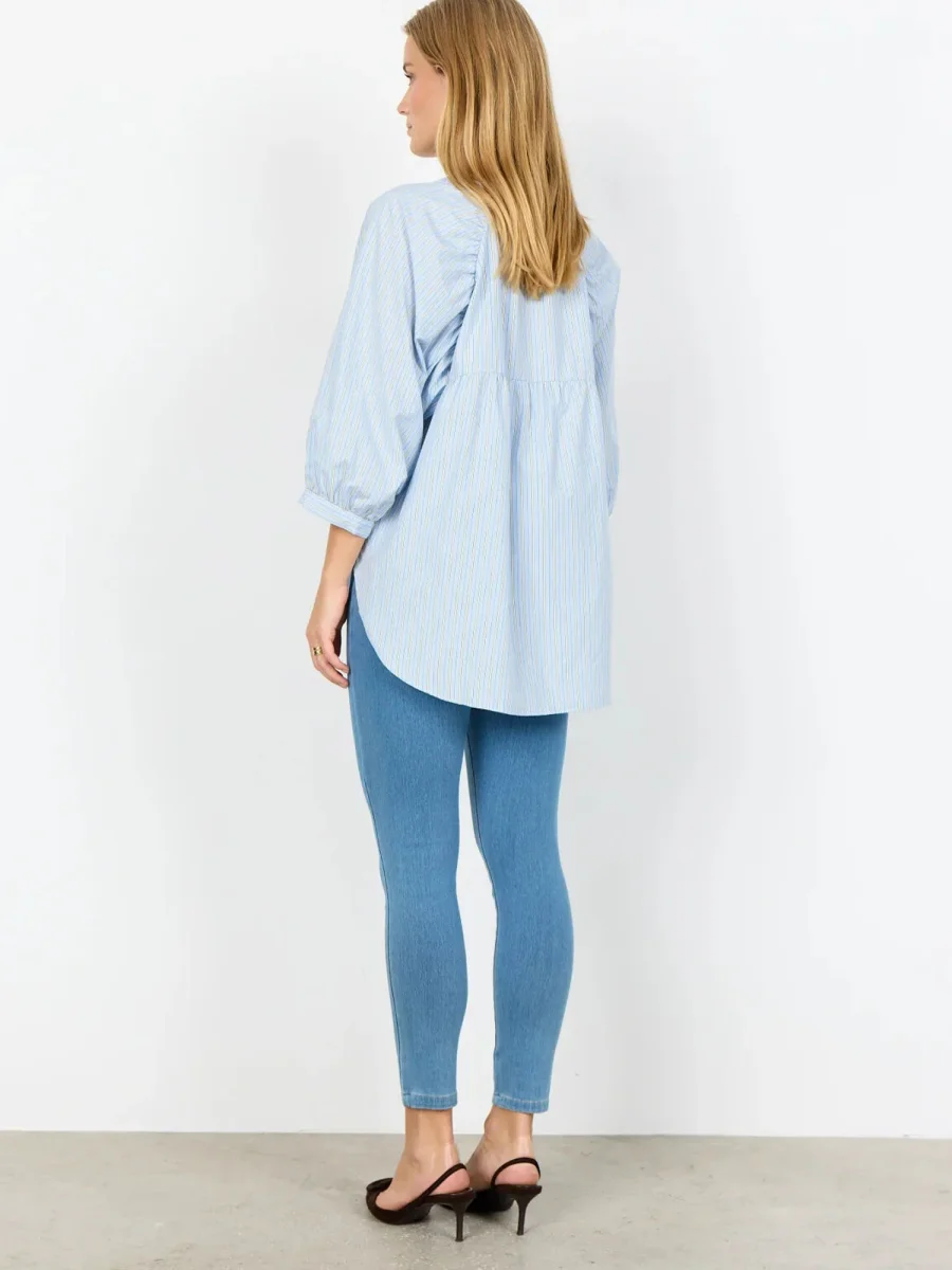 La camicia da donna Soya Concept della collezione primavera/estate combina eleganza e sostenibilità grazie al mix di 53% poliestere riciclato e 47% cotone biologico. Il modello si distingue per lo scollo rotondo, le maniche a 3/4 e l’abbottonatura frontale, arricchiti da una delicata stampa a righe che dona carattere e leggerezza al capo. Perfetta per creare outfit freschi e raffinati, si abbina facilmente a pantaloni, gonne o jeans.