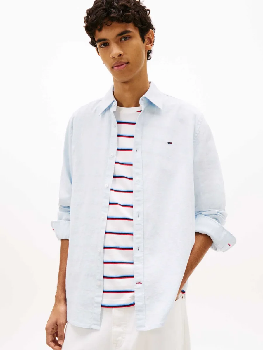 La camicia da uomo Tommy Hilfiger è un capo essenziale della collezione primavera/estate che unisce perfettamente comfort, stile casual e qualità dei materiali. Realizzata in una raffinata misto lino e cotone che assicura una sensazione leggera, traspirante e ideale per le giornate più calde, questa camicia regular fit è pensata per chi ama un look rilassato ma curato.