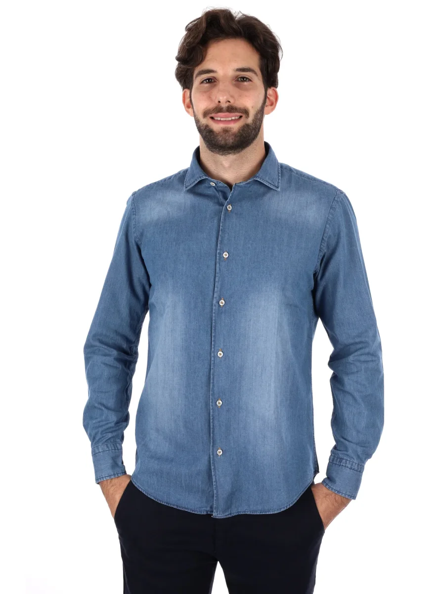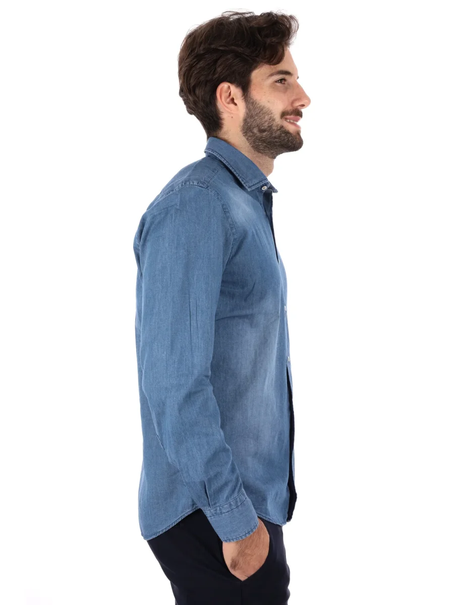 Questa camicia FB-Effebi della collezione Autunno/Inverno è realizzata in 100% cotone denim slavato, per un look autentico e contemporaneo.