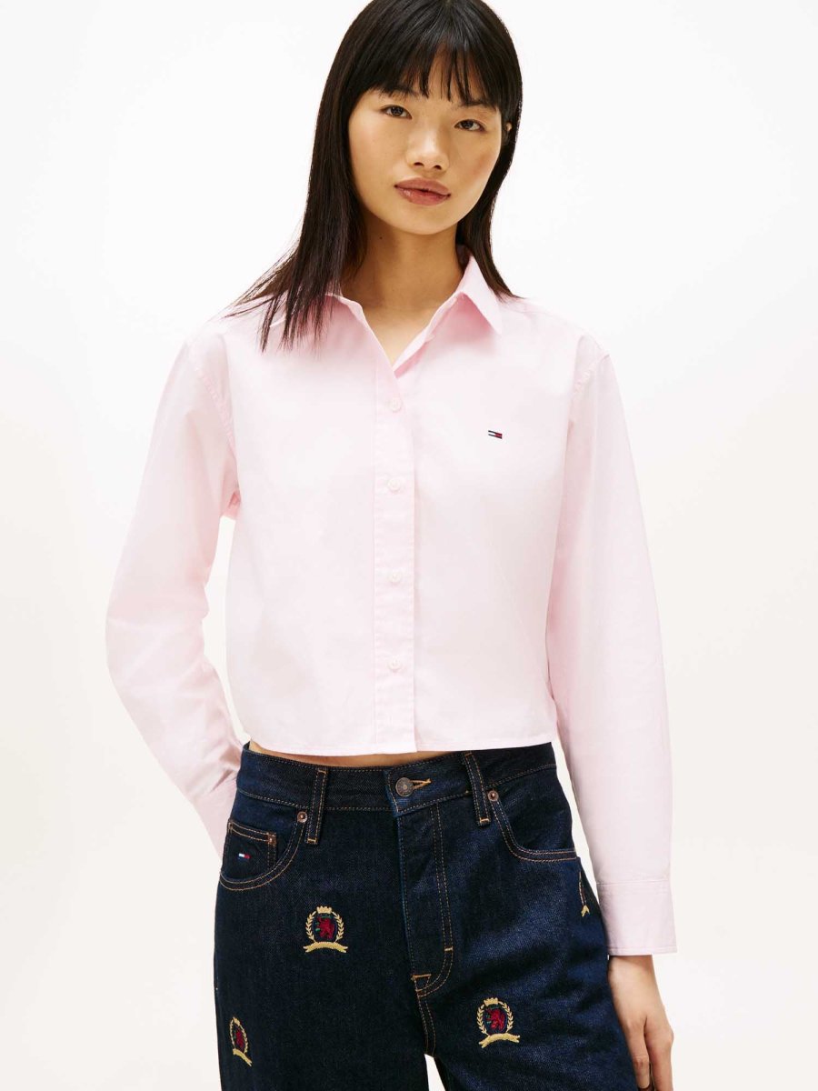La camicia da donna firmata Tommy Jeans, collezione primavera/estate, è un capo contemporaneo che unisce stile e comfort in un design fresco e versatile, perfetto per accompagnare ogni momento della giornata. Caratterizzata da un taglio cropped e da una vestibilità relaxed, questa camicia interpreta in chiave moderna il classico stile casual, offrendo una silhouette definita ma allo stesso tempo morbida e disinvolta.