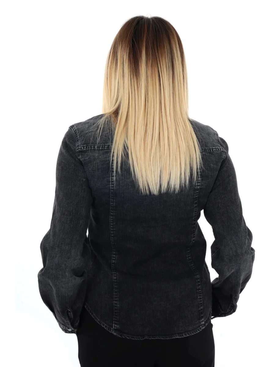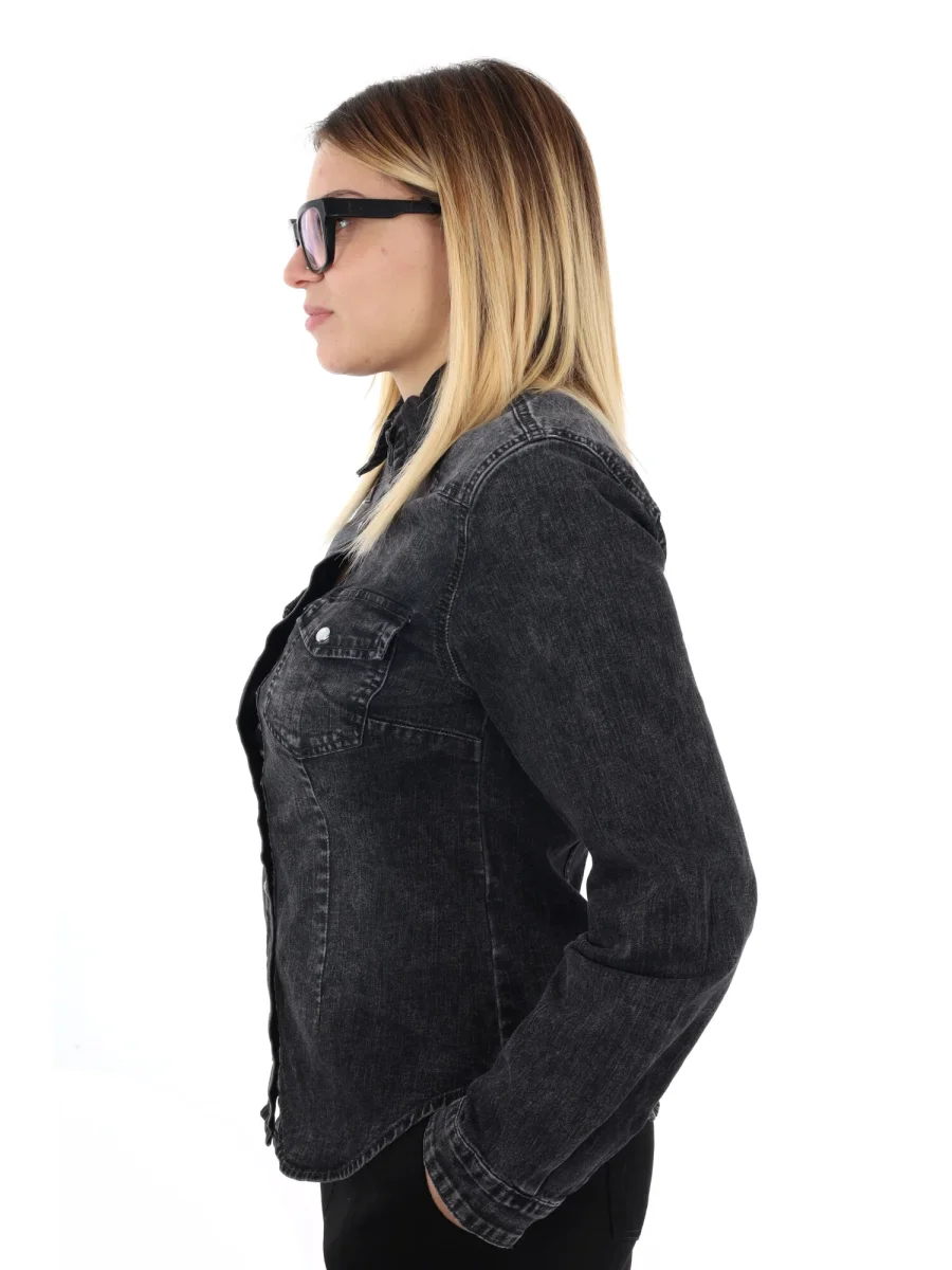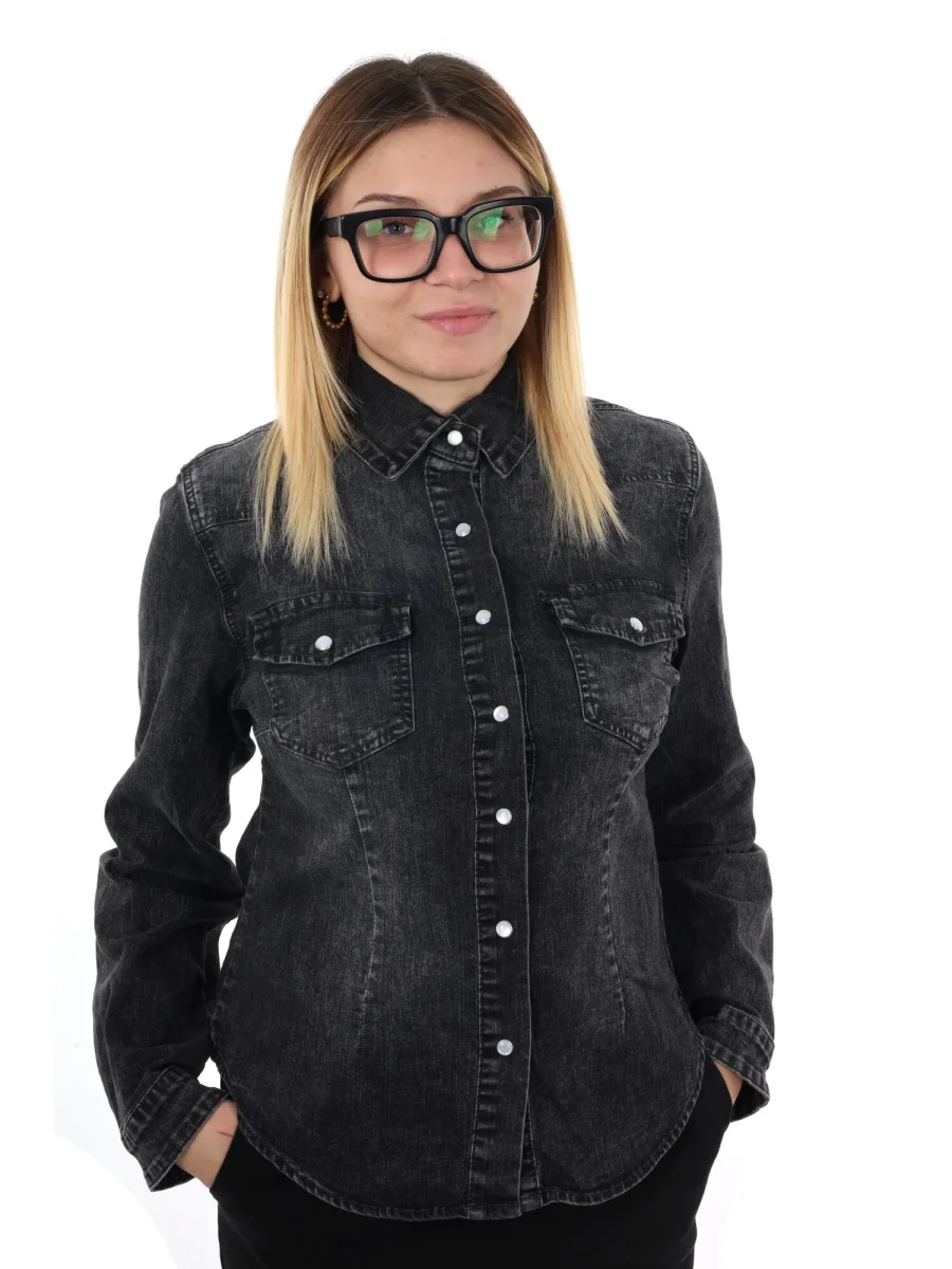 Questa camicia da donna firmata Miss Love, della nuova collezione Autunno/Inverno, è realizzata in denim slavato per un look contemporaneo e leggermente vissuto. La vestibilità slim valorizza la silhouette, mentre il fondo arrotondato conferisce un tocco raffinato e versatile. La chiusura centrale con bottoni automatici, insieme ai due taschini anteriori anch’essi con bottoni automatici, unisce praticità e stile, garantendo dettagli funzionali senza appesantire il design.