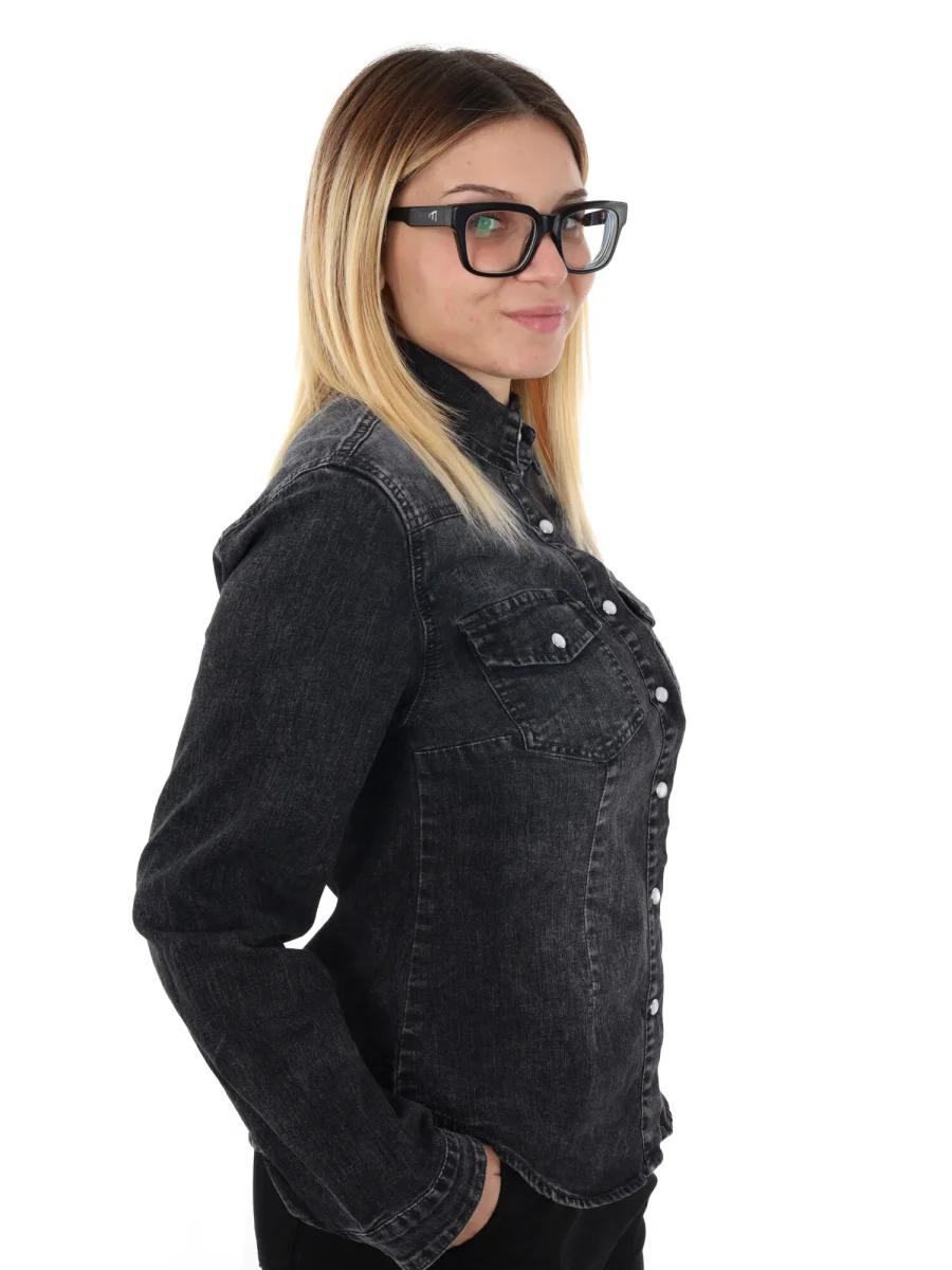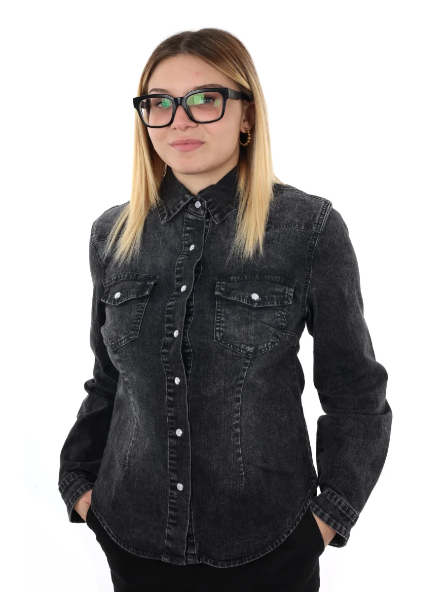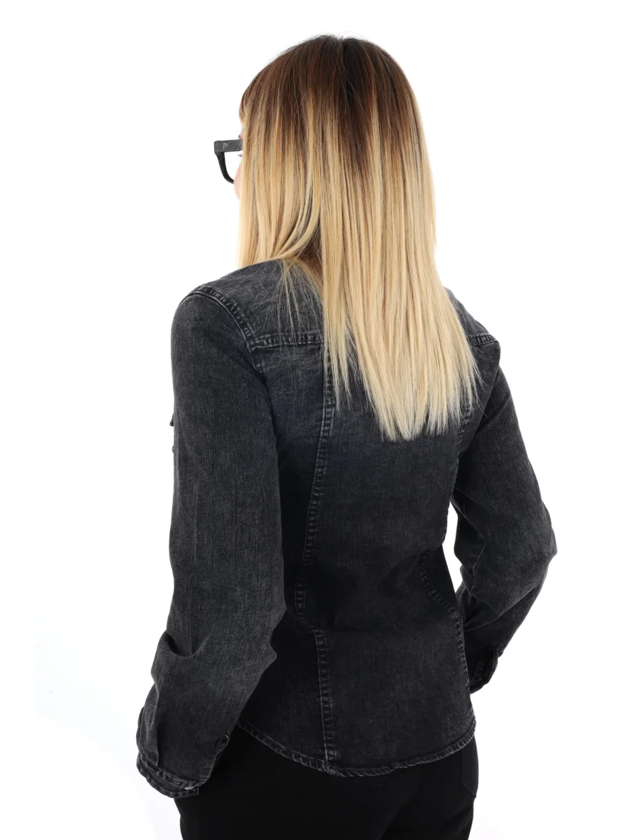 Questa camicia da donna firmata Miss Love, della nuova collezione Autunno/Inverno, è realizzata in denim slavato per un look contemporaneo e leggermente vissuto. La vestibilità slim valorizza la silhouette, mentre il fondo arrotondato conferisce un tocco raffinato e versatile. La chiusura centrale con bottoni automatici, insieme ai due taschini anteriori anch’essi con bottoni automatici, unisce praticità e stile, garantendo dettagli funzionali senza appesantire il design.