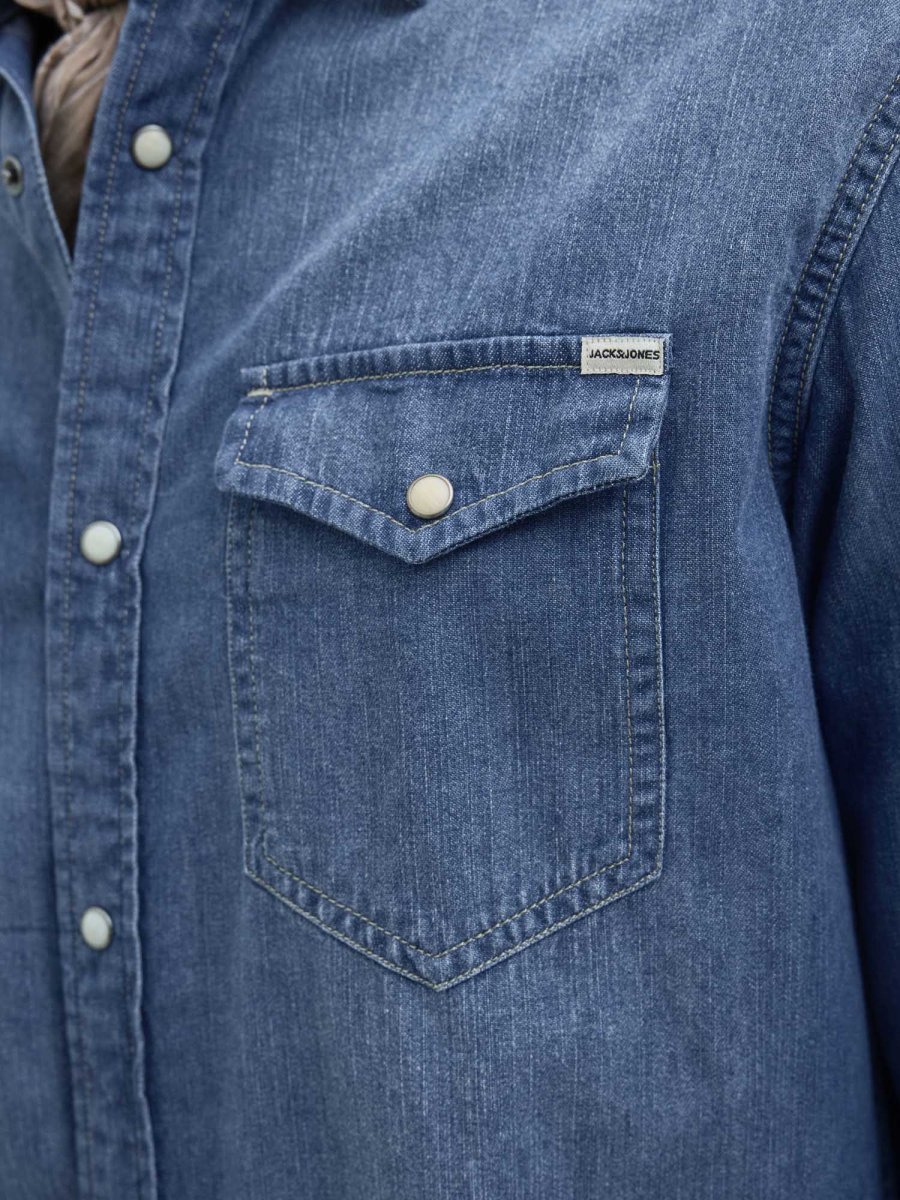Pratica e versatile è la classica, ma sempre molto attuale, camicia in denim uomo firmata Jack&Jones, collezione primavera/estate. Lasciati avvolgere nel comfort più totale ed indossala per uno stile unico ed originale!Vestibilità slim fit, tasche anteriori con chiusua bottone automatico e colletto camicia.