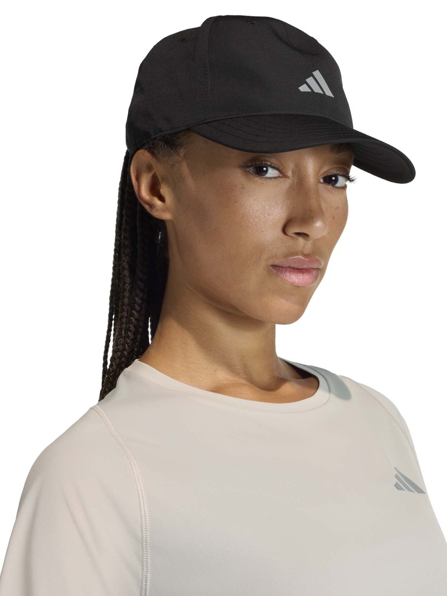 La visiera curva protegge efficacemente dai raggi solari, mentre la chiusura regolabile sul retro assicura una vestibilità personalizzata e stabile anche durante il movimento. Il look essenziale in nero, arricchito dal logo Adidas, aggiunge un tocco sportivo e versatile, facilmente abbinabile a qualsiasi outfit tecnico.