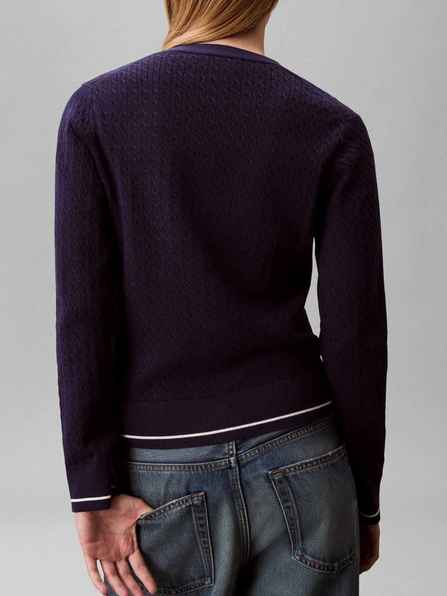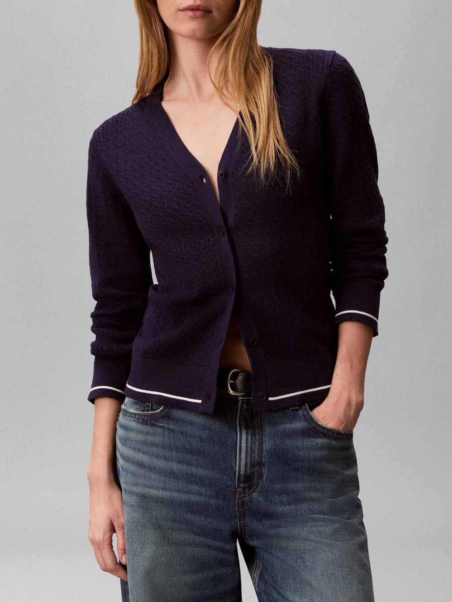 Elegante e versatile, questo cardigan da donna firmato Calvin Klein appartiene alla linea Calvin Klein Jeans e unisce comfort e stile senza tempo. Realizzato in morbida maglia a trecce, avvolge la silhouette con delicatezza e dona una texture ricca e sofisticata al capo.