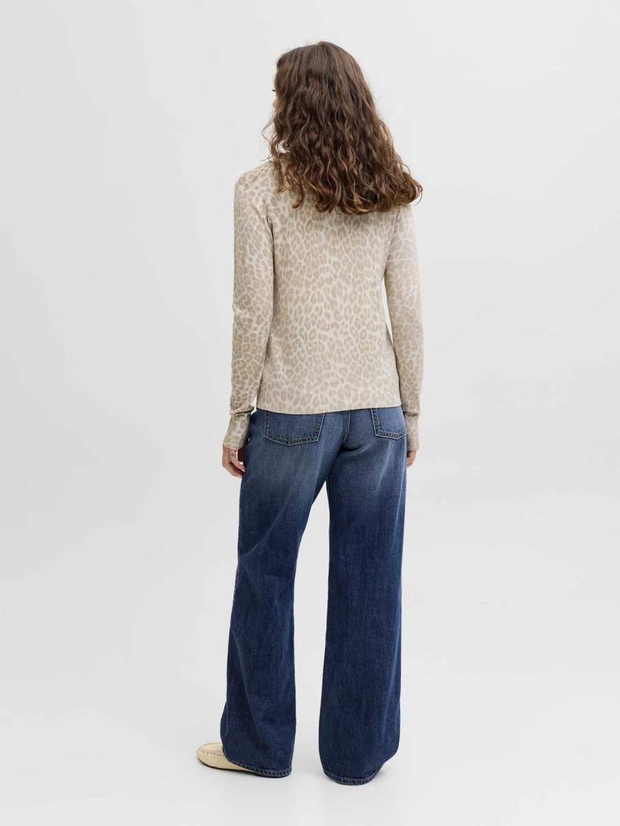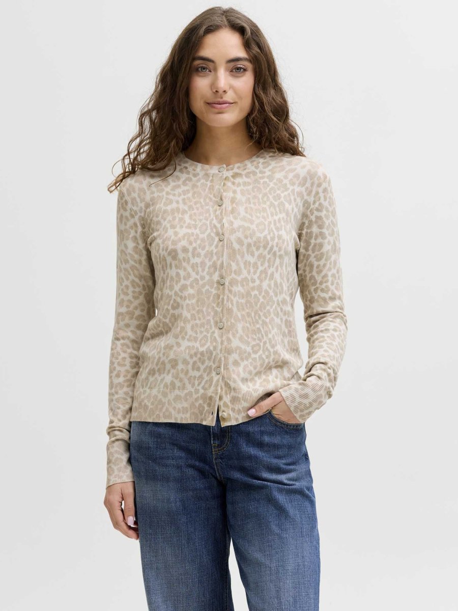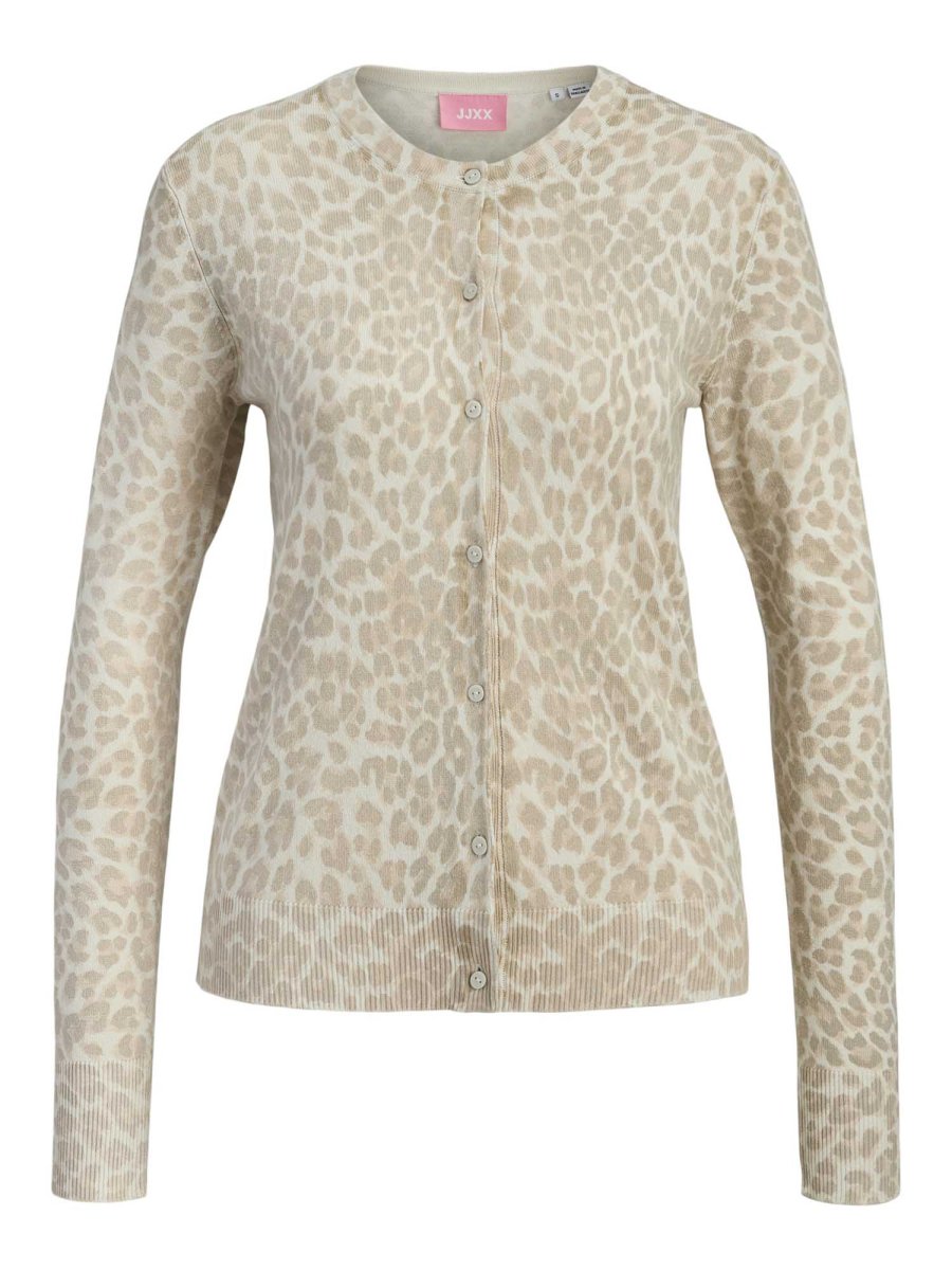 JJXX Cardigan Leopard Print – un cardigan morbido e versatile, caratterizzato da una stampa leopardata su tutta la superficie, ideale per chi cerca un capo audace e alla moda.