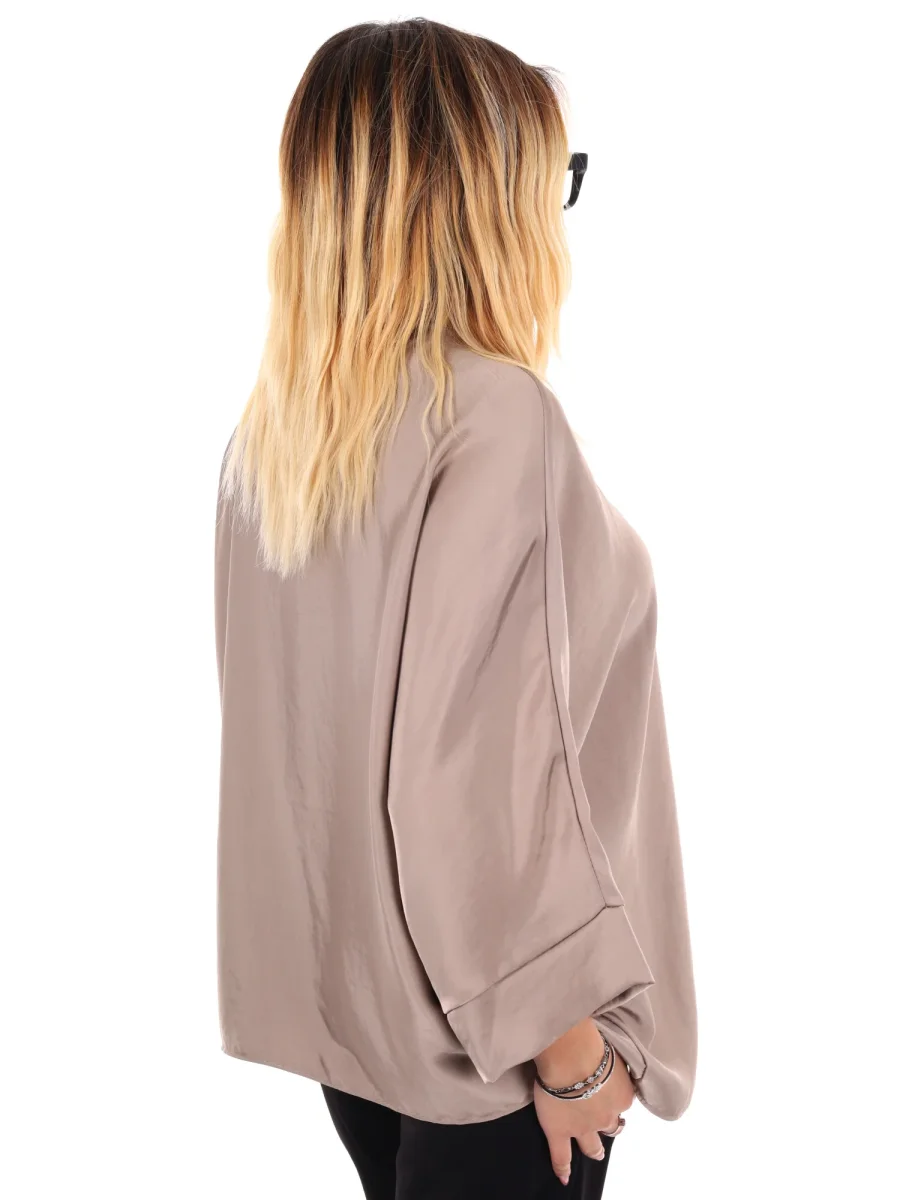 Rinnova il tuo stile con la casacca kimono Miss Love da donna, un capo raffinato e versatile della nuova collezione Autunno/Inverno. Caratterizzata da una vestibilità leggermente over, offre comfort e libertà di movimento, adattandosi perfettamente a diverse fisicità.