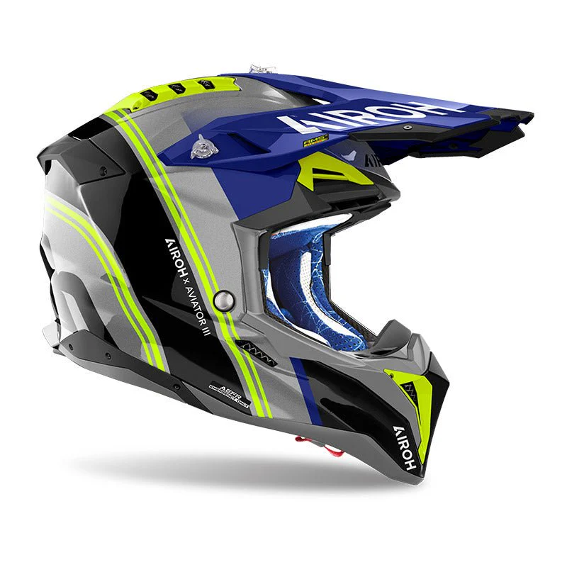 Raise the bar. Lasciarsi tutti dietro. Di nuovo. Il difficile non è vincere una volta, ma continuare a farlo. Aviator 3 alza il livello della competizione e ridefinisce gli standard di un casco offroad. La calotta, declinata nella versione Carbon 3K in esclusiva sulla grafica Primal, prevede per le altre varianti grafiche la nobile HPC Carbon. Ben 4 sono le misure della calotta esterna in entrambe le versioni, che è stata progettata avvalendosi della galleria del vento per ingegnerizzare al meglio forme e performance. Estrema attenzione è stata quindi dedicata all’aerodinamica, con l’obiettivo di rendere il casco stabile anche alle alte velocità, ed alla termodinamica, per ottimizzare la termoregolazione. La summa tecnologica di Airoh si condensa in questo nuovo prodotto, in cui sono profusi i sistemi AMS2 Plus (Airoh Multiaction Safety System Plus), AEFR (Airoh Emergency Fast Release) e AMLS (Airoh Magnetic Lining System) che si evolve, includendo anche i guanciali magnetici. Le 8 prese d’aria e gli spoiler con estrattori integrati rendono il fitting di Aviator 3 confortevole anche nelle condizioni di utilizzo più estreme, così come l’innovativo sistema idratazione AHS (Airoh Hydration System) integrato nell’EPS. Aviator 3. Senza limiti. Full Carbon 3K. HPC Carbon From 1290 g ±50 g (only for Primal graphic). From 1350 g ±50 g (other graphics) 4 shells: 1° XS-S, 2° M, 3° L, 4° XL-XXL.