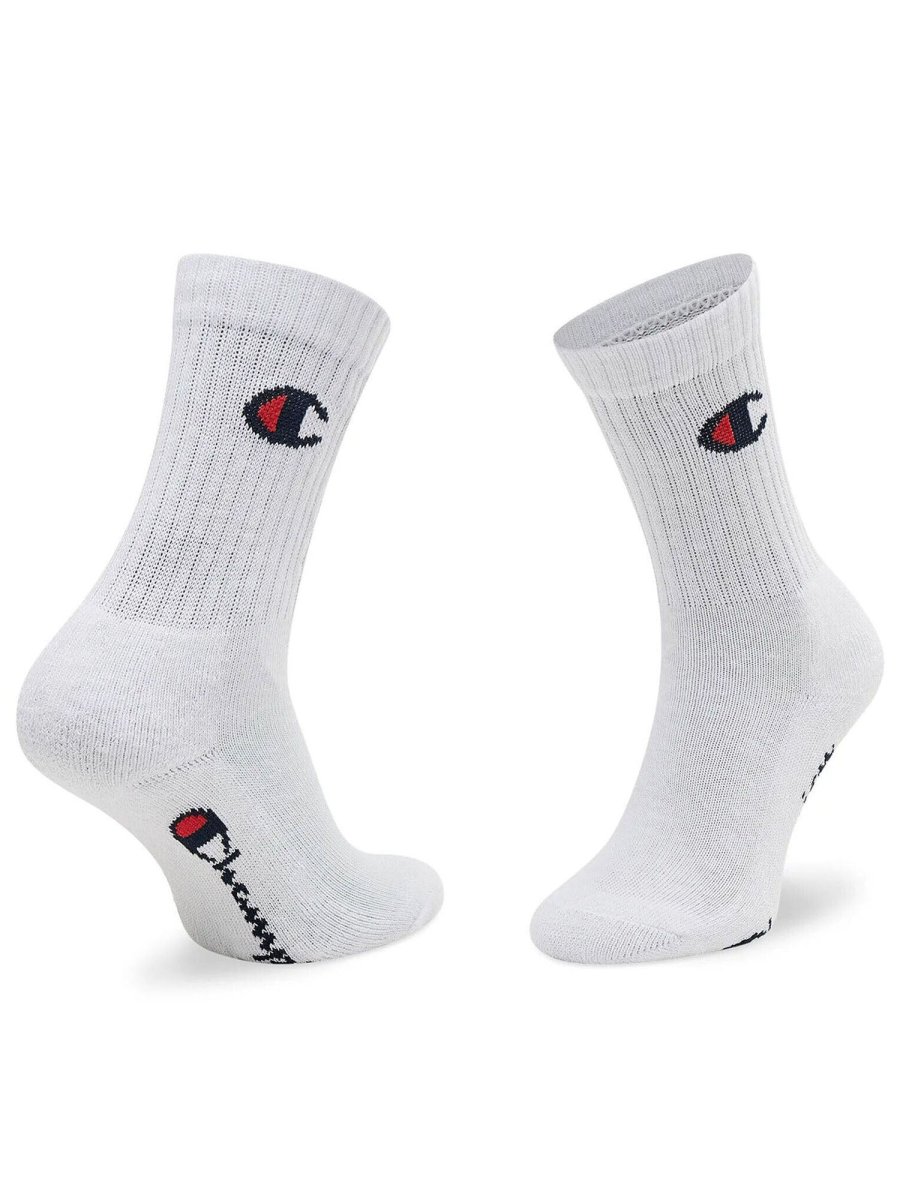 Set di 3 paia di calze lunghe da bambino firmate Champion realizzate in cotone. Il modello, in tessuto traspirante con costine e bordino fino a metà caviglia, è la scelta ideale per chi vuole essere comodo senza rinunciare allo stile. Il logo Champion è apposto sulle costine e sotto il piede.