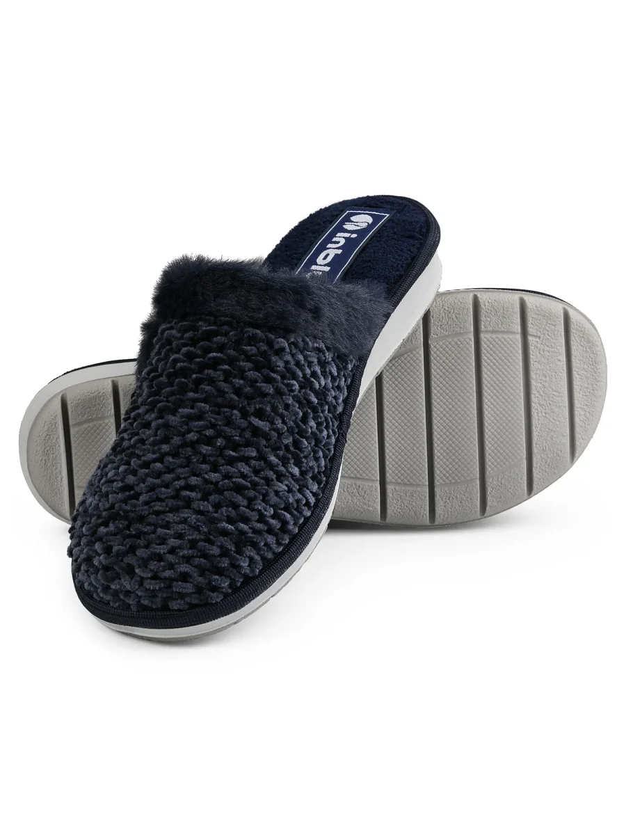 Ciabatta Inblu della collezione Autunno/Inverno, realizzata con tomaia in tessuto morbido e soffice soletta calda che avvolge il piede garantendo comfort e benessere. Completata da una suola in gomma antiscivolo, offre stabilità e sicurezza a ogni passo, rendendola ideale per affrontare la stagione fredda con praticità e comodità.