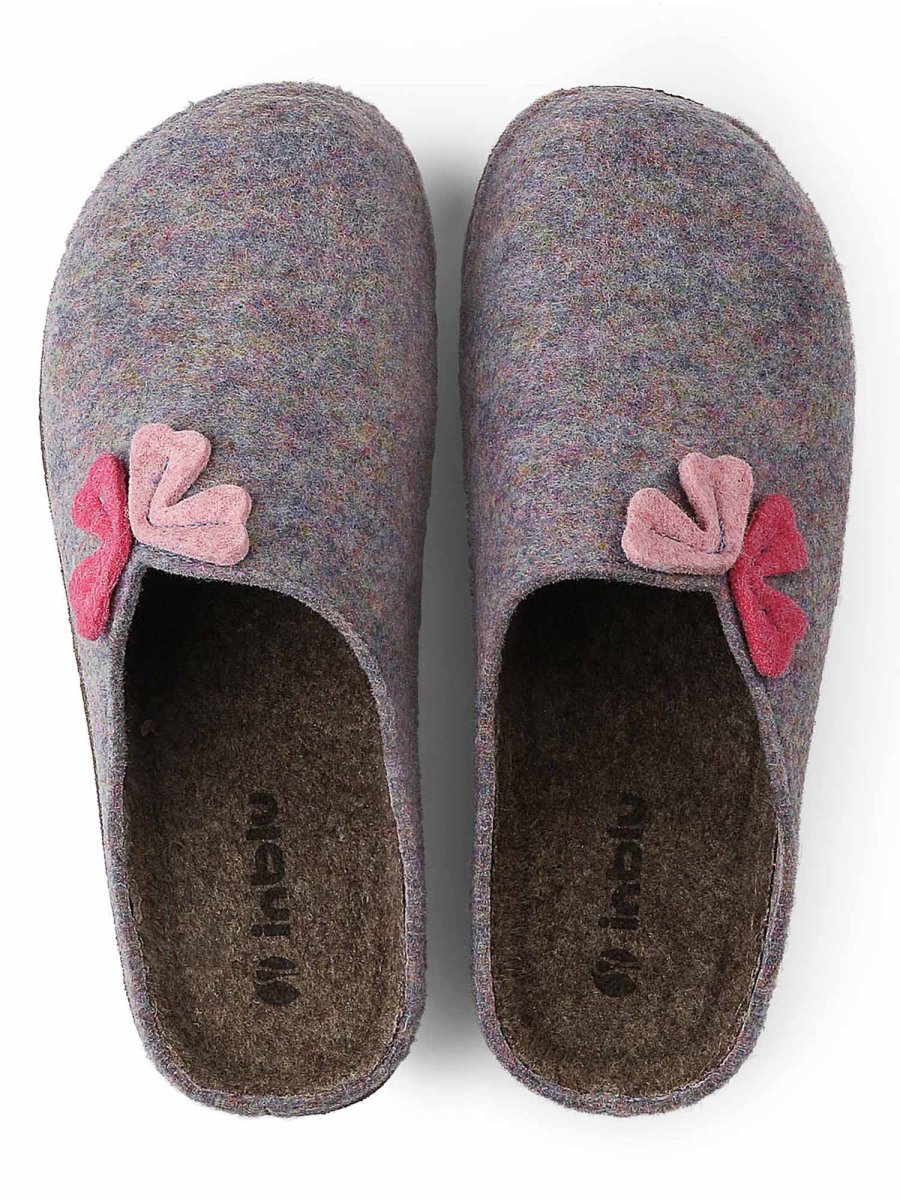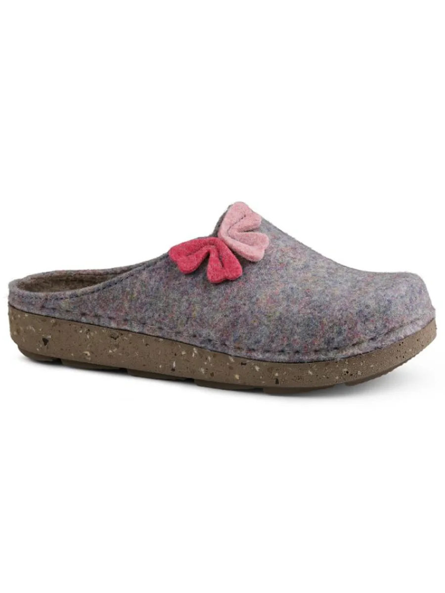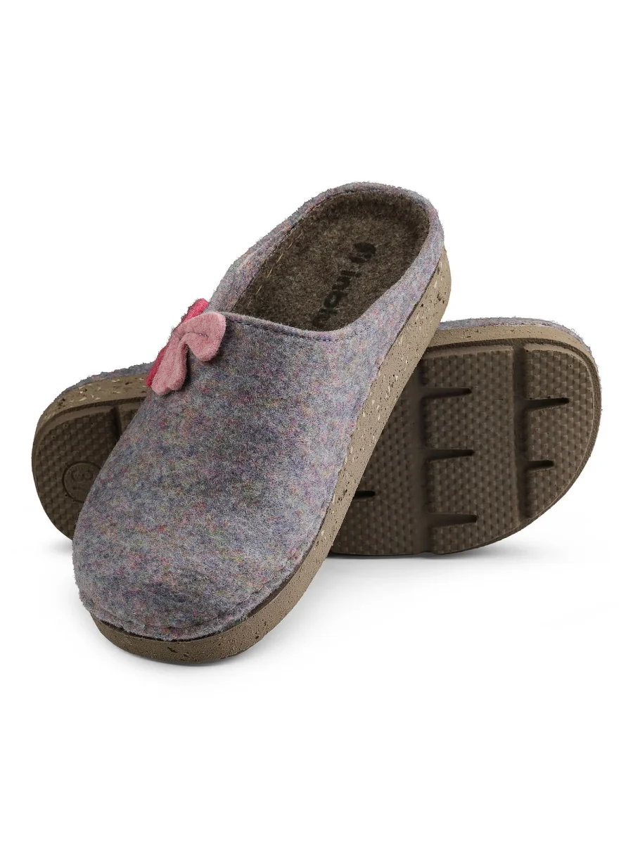 Ciabatta donna eco-friendly Autunno/Inverno, realizzata in tessuto feltro con applicativo floreale rosa che aggiunge un dettaglio femminile e raffinato. La soletta anatomica morbida offre sostegno e comfort, mentre la suola in gomma leggera e antiscivolo, prodotta con materiali eco-compatibili, garantisce stabilità e sicurezza. Una calzatura pensata per chi desidera unire benessere, stile e attenzione all’ambiente.
