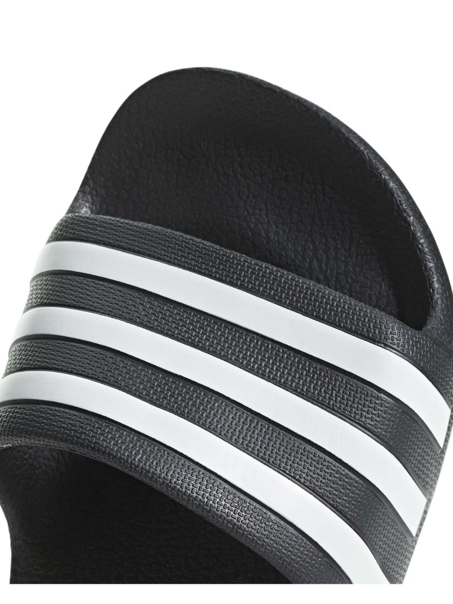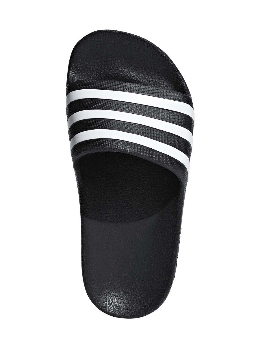 .Le Adidas Adilette Aqua Junior unisex in colore nero sono ciabatte leggere, comode e versatili, ideali per bambini e ragazzi sia a casa che in piscina, al mare o dopo lo sport. La suola in EVA assicura ammortizzazione morbida e comfort immediato ad ogni passo, mentre la fascia regolabile sul collo del piede garantisce una calzata sicura e facile da indossare.