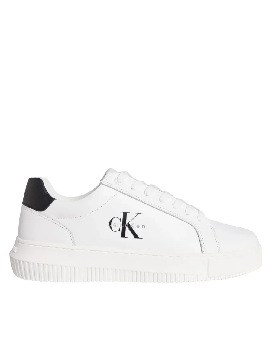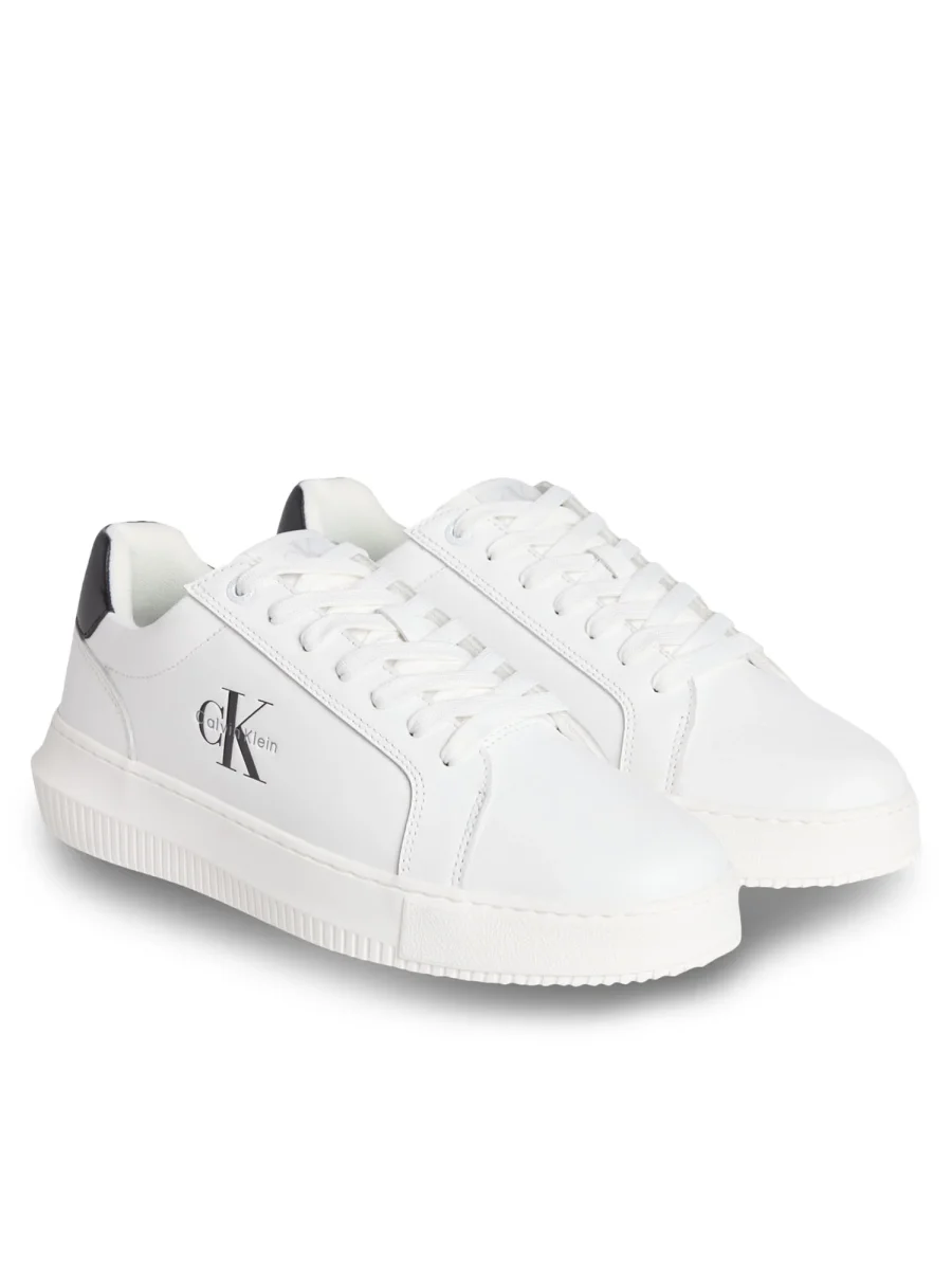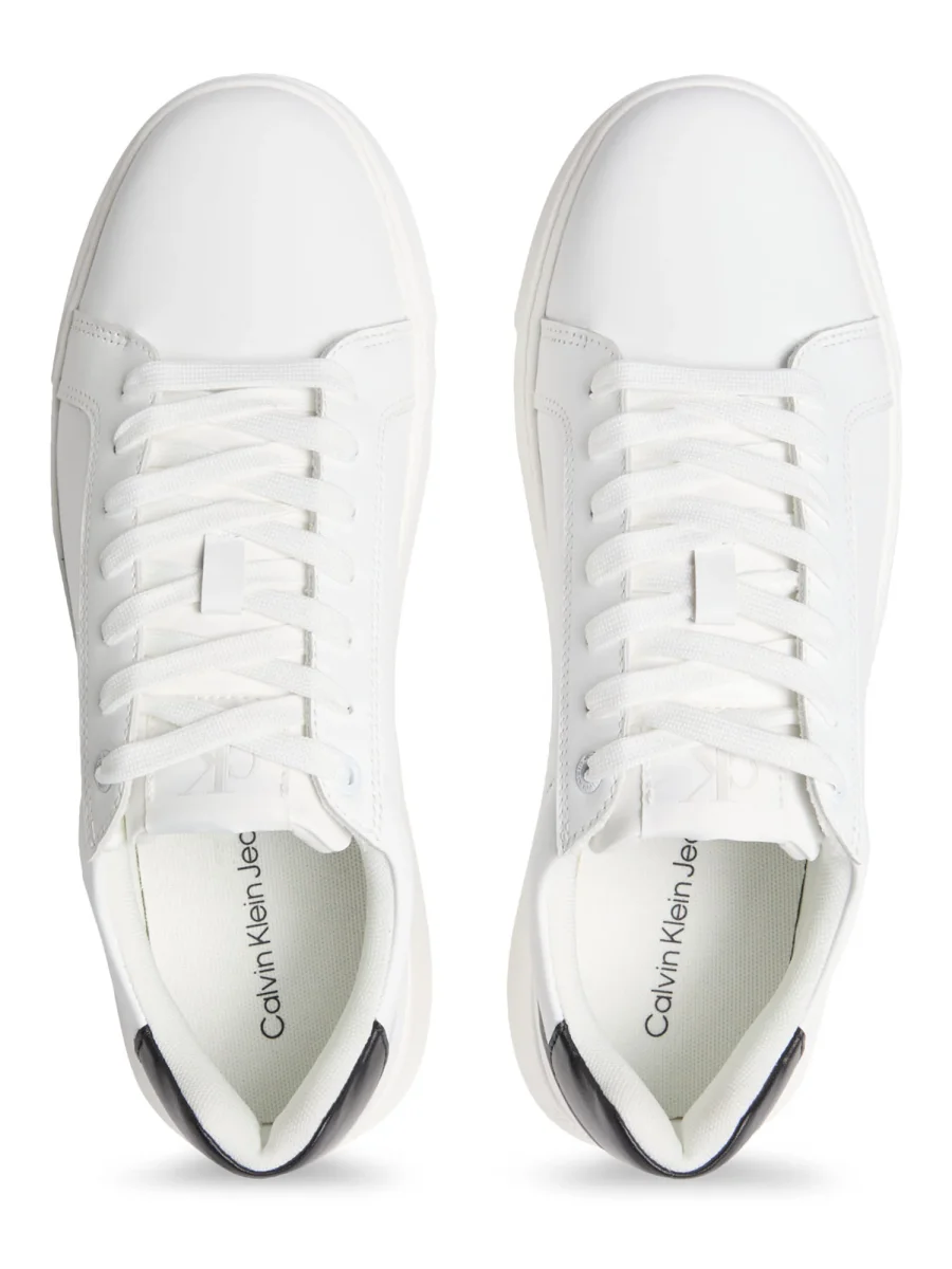 Sneakers da uomo della collezione autunno/inverno di Calvin Klein Jeans, realizzate con tomaia in pelle liscia, fodera interna a rete in misto di poliestere riciclato. Presenta patch logo su linguetta, logo impresso su laterale, leggera imbottitura al tallone per una sensazione di benessere durante la calzata, suola esterna in TPR riciclato zigrinata.