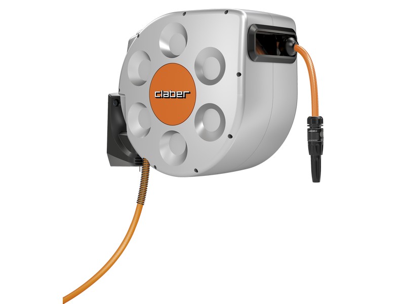 Avvolgitubo con riavvolgimento automatico, tubo specialeNLindeformabile mt. 20, tubo di alimentazione mt. 1,5, presaNLda 3/4? per collegamento al rubinetto, lancia con gettoNLregolabile, predisposizione per blocco antifurto. CompletoNLdi viti e tasselli per il montaggio a parete.