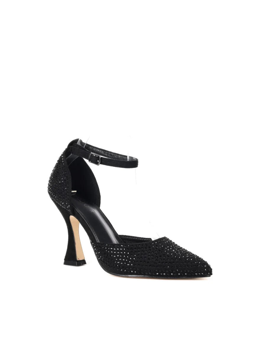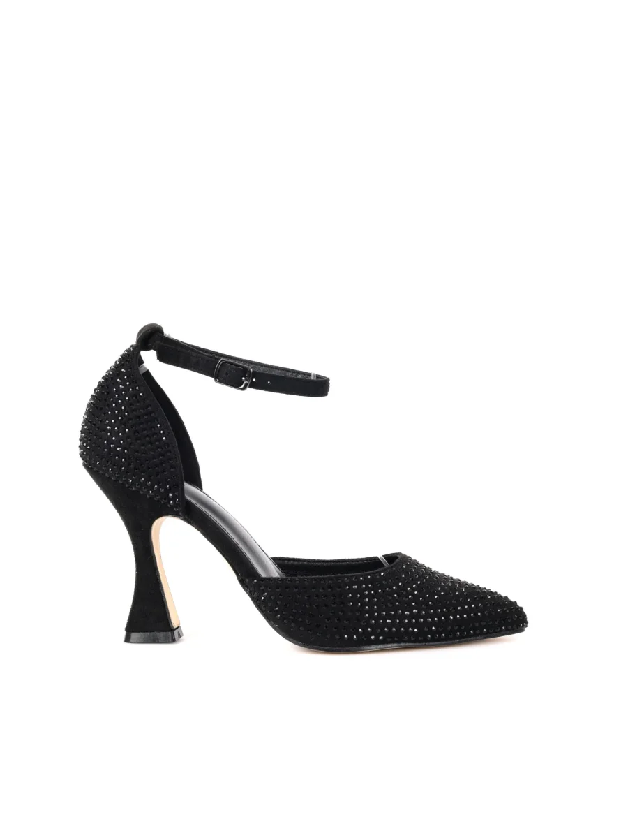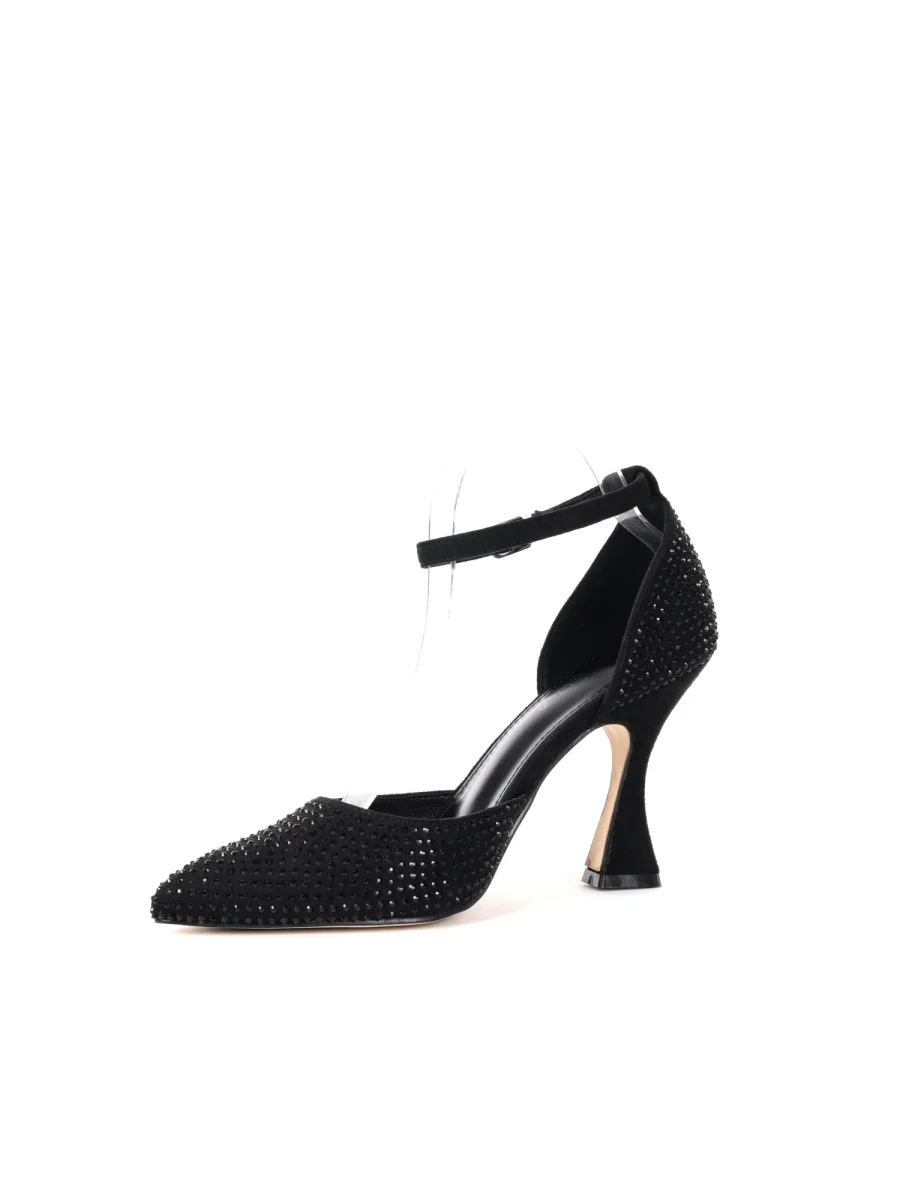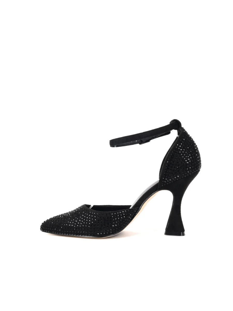 Gli strass che impreziosiscono la scarpa donano un’eleganza luminosa, perfetta per impreziosire ogni outfit, dalle occasioni speciali agli eventi serali più sofisticati. Il tacco a rocchetto, stabile e confortevole, assicura un passo deciso senza rinunciare al comfort, ideale per affrontare con stile e comodità anche le giornate più lunghe.