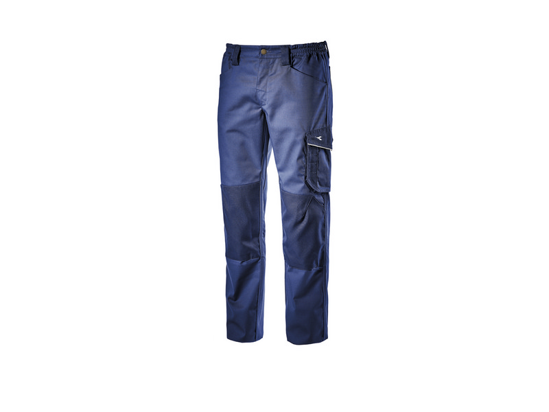 In poliestere e cotone, tasca laterale, dettagli rifrangenti, tasca portametro, portamartello e dettagli in contrasto inNLmateriale anti abrasivo, elastico in vita, triple cuciture.