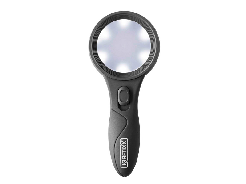 Con 6 led luminosi, lente ? mm. 65, impugnatura ergonomica, ideale per leggere giornali, riviste, libri, ecc. Funziona con 2 batterie ministilo incluse.NLNLcod. 41512 cm. 19 cf/pz 1