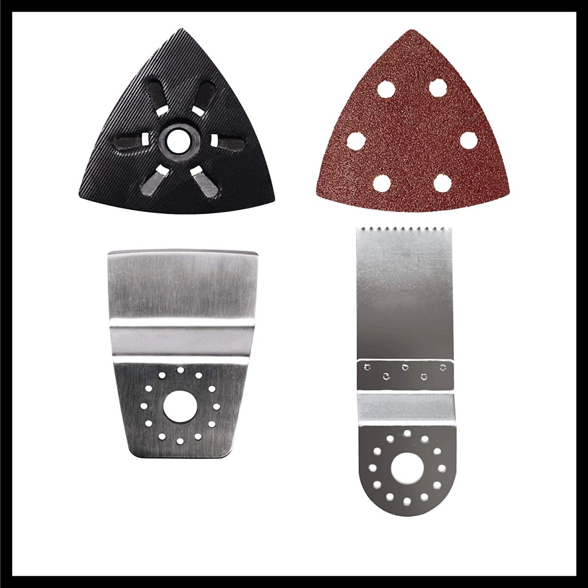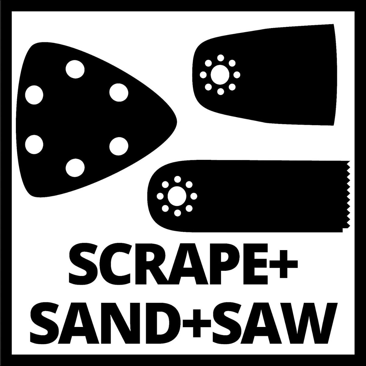 Polivalente dispositivo multifunzione facile da utilizzare sia per il bricolage, sia in garage, per lavori di riparazione e ristrutturazione, o per l’uso domestico. Il peso ridotto, l’ergonomicità e la flessibilità delle possibilità di impiego rendono questo strumento una stupefacente e piacevole alternativa all’acquisto di vari dispositivi differenti. Proprio nel punto in cui si richiedono lavori di precisione, i Multitool dimostrano l’importanza della leggerezza e della possibilità di adattamento. I vari componenti permettono di realizzare molti lavori differenti. Con il pratico platorello triangolare e la carta abrasiva compatibile, è possibile levigare con precisione il legno anche negli angoli più difficili. In un attimo il dispositivo multifunzione diventa una pratica sega per lavori di precisione: La vasta gamma di lame per sega speciali, esistenti in commercio, amplia le possibilità d’uso. Il raschietto permette di rimuovere resti sotto la moquette o tappeti, o sigillanti induriti.