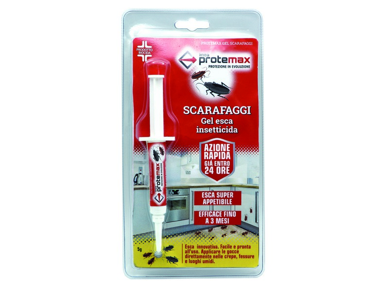Gel pronto all’uso in pratica siringa, altamente appetibile per gli scarafaggi, ideale per crepe, fessure e luoghi umidi, azione rapida entro 24 ore, efficacia fino a 3 mesi dall’applicazione. Formato gr. 5, in blister.