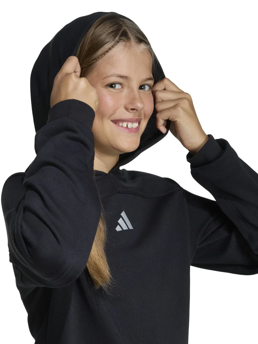 La felpa Adidas per bambina unisce stile contemporaneo e comfort in un capo versatile, perfetto per la stagione primavera/estate. Realizzata in morbido cotone misto con interno garzato, offre una sensazione piacevole sulla pelle e libertà di movimento durante ogni attività, dai giochi all’aperto alle giornate casual. Il design cropped con cappuccio dona un tocco moderno e dinamico, mentre la vestibilità regolare la rende facile da abbinare a leggings, jeans o pantaloni sportivi. Dettagli curati come le finizioni elasticizzate assicurano comfort e praticità in ogni occasione.