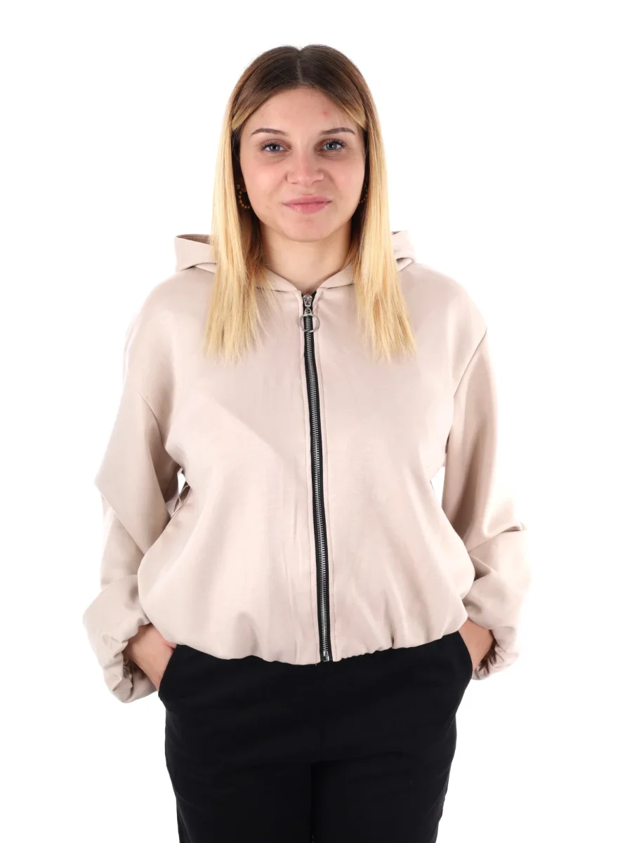 FELPA CON CAPPUCCIO E ZIP MISS LOVE DA DONNA PANNA