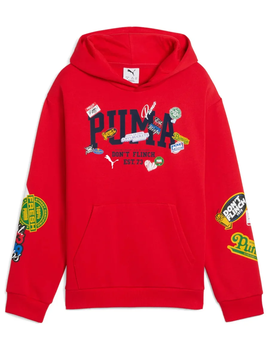 Felpa junior PUMA perfetta per la stagione autunno/inverno, realizzata in morbido cotone felpato per garantire comfort e calore. Dotata di cappuccio non regolabile, offre praticità e stile sportivo. Completa di tasca a amrsupio e una vestibilità comoda.