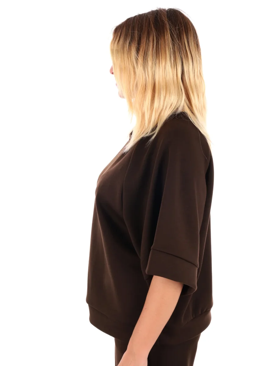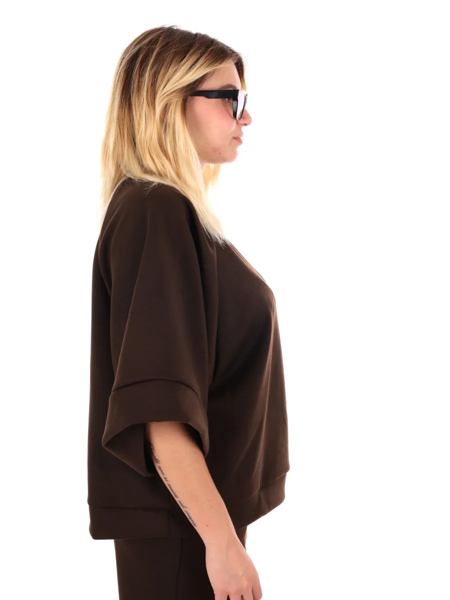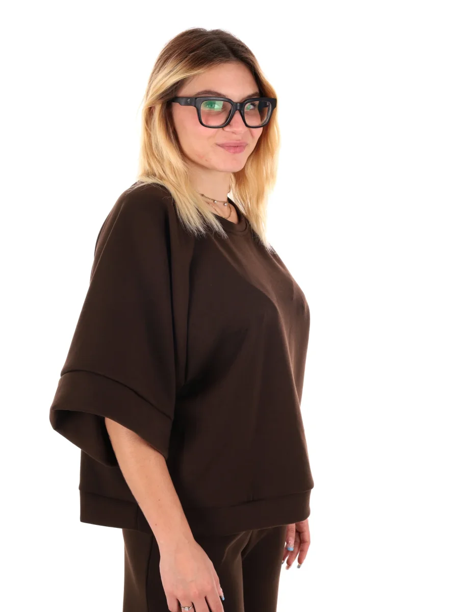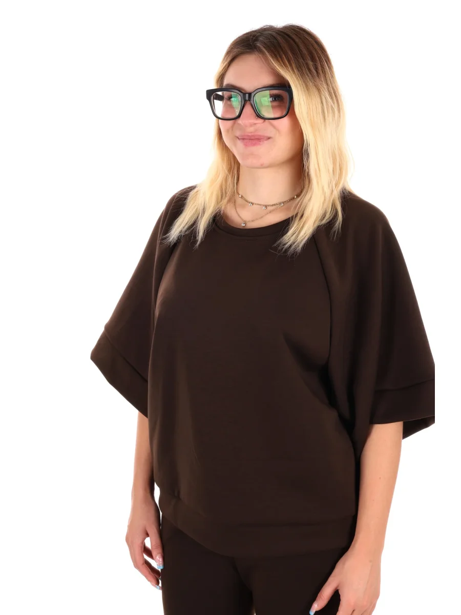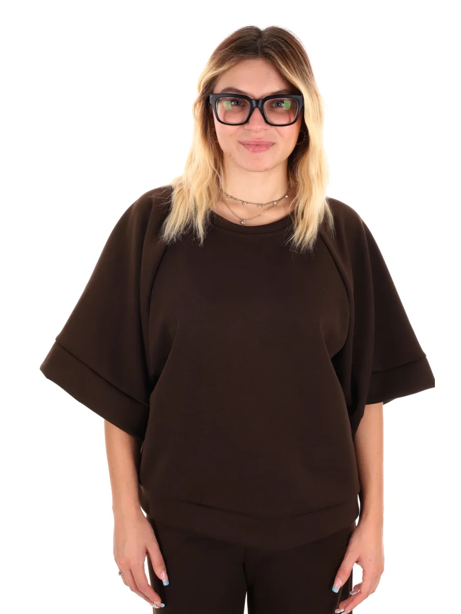 FELPA CON MANICHE AMPIE MISS LOVE DA DONNA MARRONE