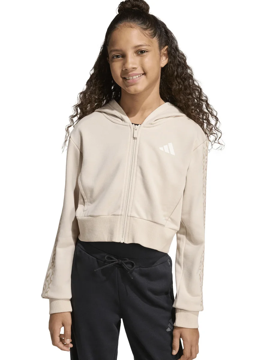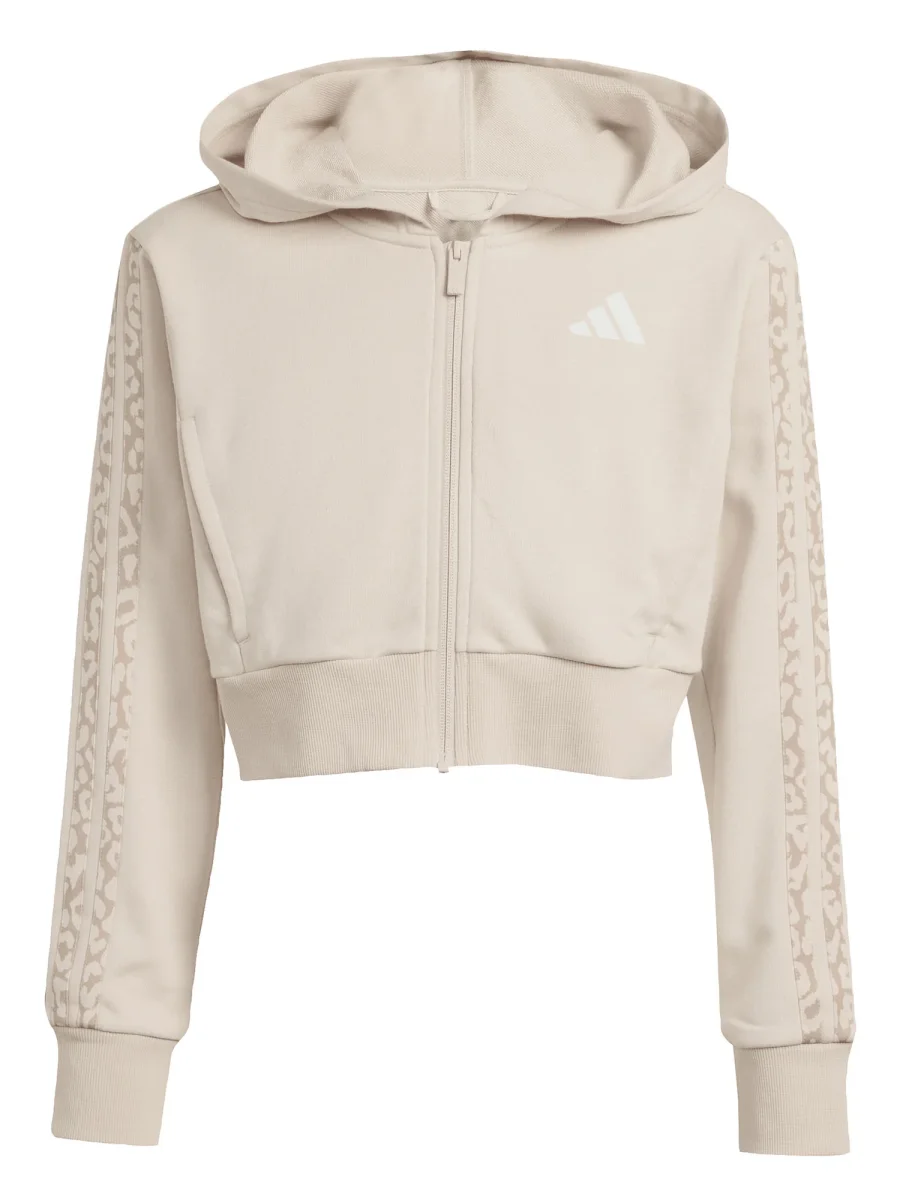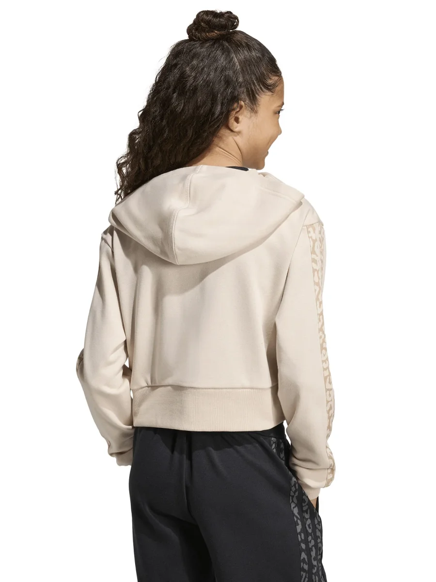 FELPA CROP CON CAPPUCCIO E INSERTI LEOPARDATI ADIDAS DA BAMBINA BEIGE