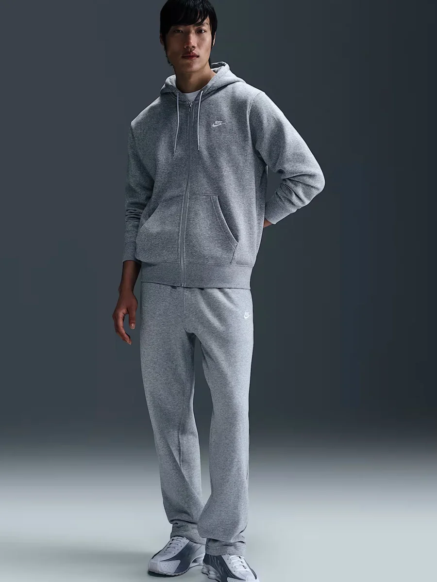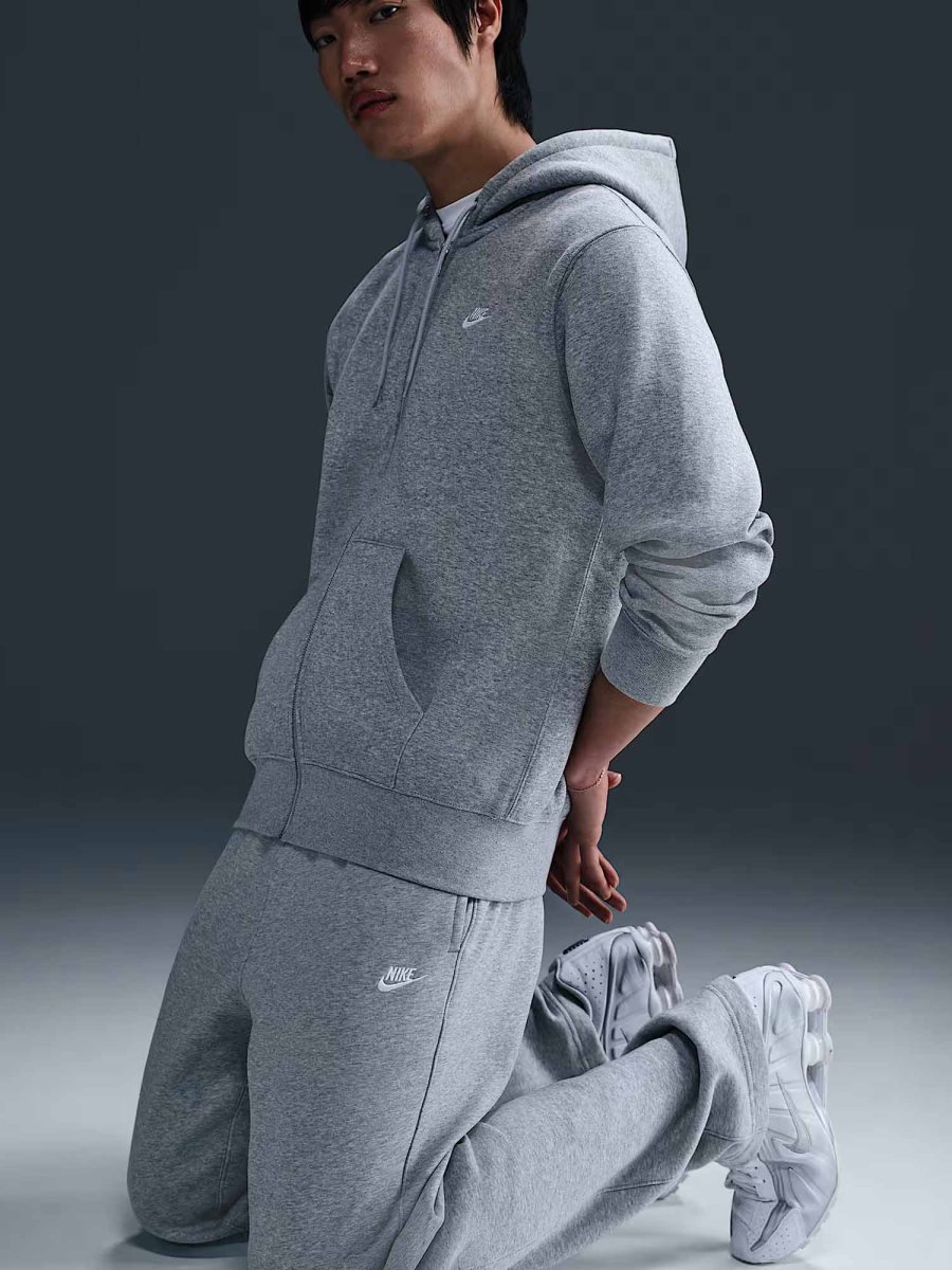 La felpa full zip con cappuccio Nike Club da uomo, unisce un look essenziale a una morbidezza che senti subito sulla pelle. All’esterno appare liscia e ordinata, mentre il tessuto fleece spazzolato interno regala calore e comfort continuo. Il taglio è classico, comodo, pensato per indossarla facilmente con altri capi, mentre il cappuccio doppio aggiunge struttura e protezione, grazie anche al cordino che consente di regolarne la calzata.