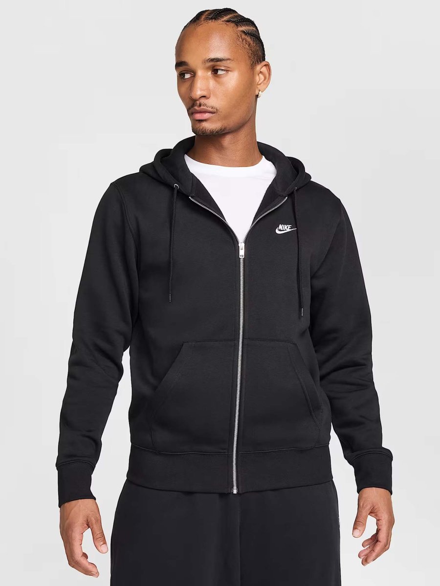 La felpa full zip con cappuccio Nike Club da uomo, unisce un look essenziale a una morbidezza che senti subito sulla pelle. All’esterno appare liscia e ordinata, mentre il tessuto fleece spazzolato interno regala calore e comfort continuo. Il taglio è classico, comodo, pensato per indossarla facilmente con altri capi, mentre il cappuccio doppio aggiunge struttura e protezione, grazie anche al cordino che consente di regolarne la calzata.