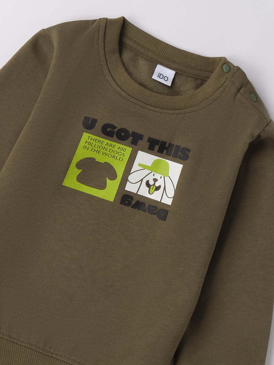Felpa per bambino iDO della collezione Autunno/Inverno, realizzata in morbida felpa invernale, calda e confortevole. Il modello girocollo garantisce praticità e stile per i look quotidiani.