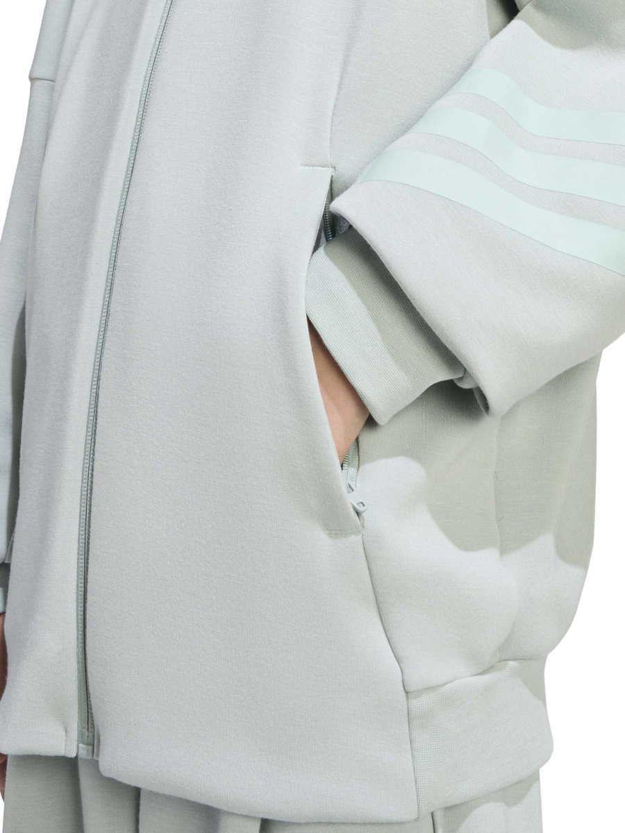 Parte della nuova collezione primavera/estate, il modello presenta una pratica chiusura full zip che facilita la vestibilità e permette di indossarla facilmente sopra t-shirt o top. Il cappuccio aggiunge protezione nelle giornate più fresche, mentre le iconiche 3 Strisce lungo le maniche richiamano l’inconfondibile stile adidas, donando al capo un look sportivo e contemporaneo.
