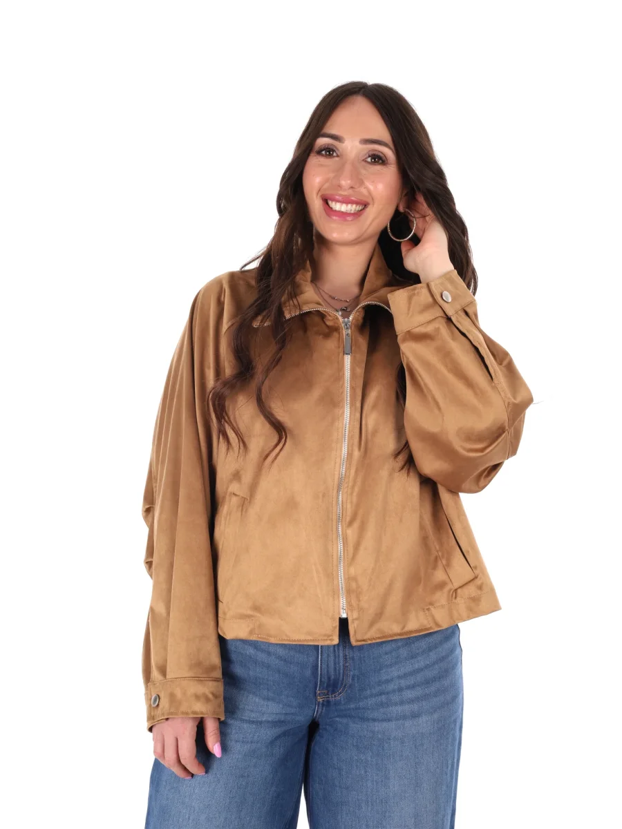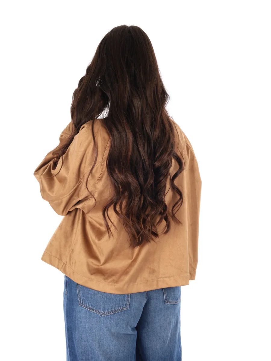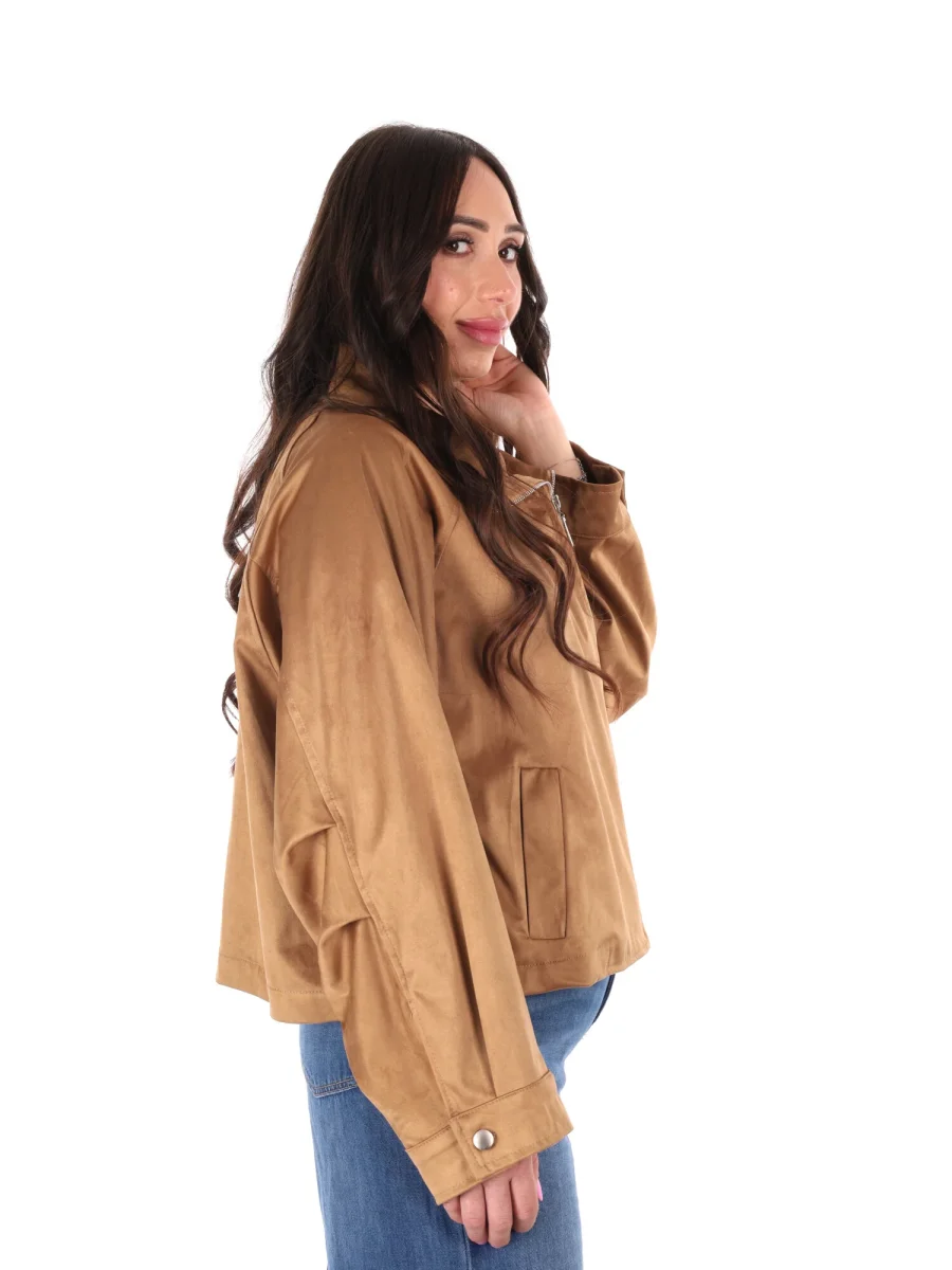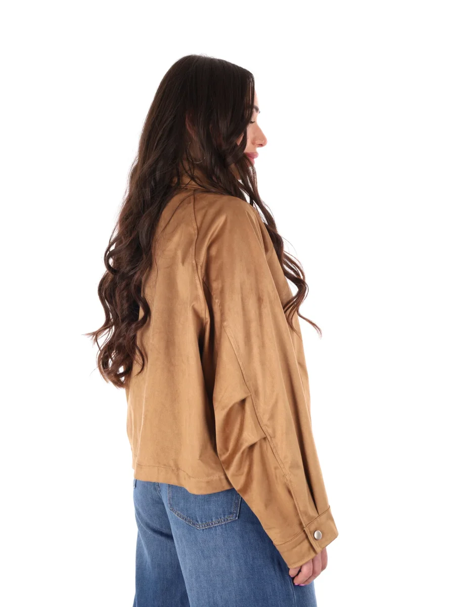Giaccia da donna Miss Love della collezione Primavera/Estate, realizzata in morbido scamosciato effetto renna, un capo che unisce stile e comfort con un fascino naturale e sofisticato. La vestibilità loose conferisce libertà di movimento e un look rilassato ma curato, perfetto per chi ama sentirsi elegante senza rinunciare al comfort.