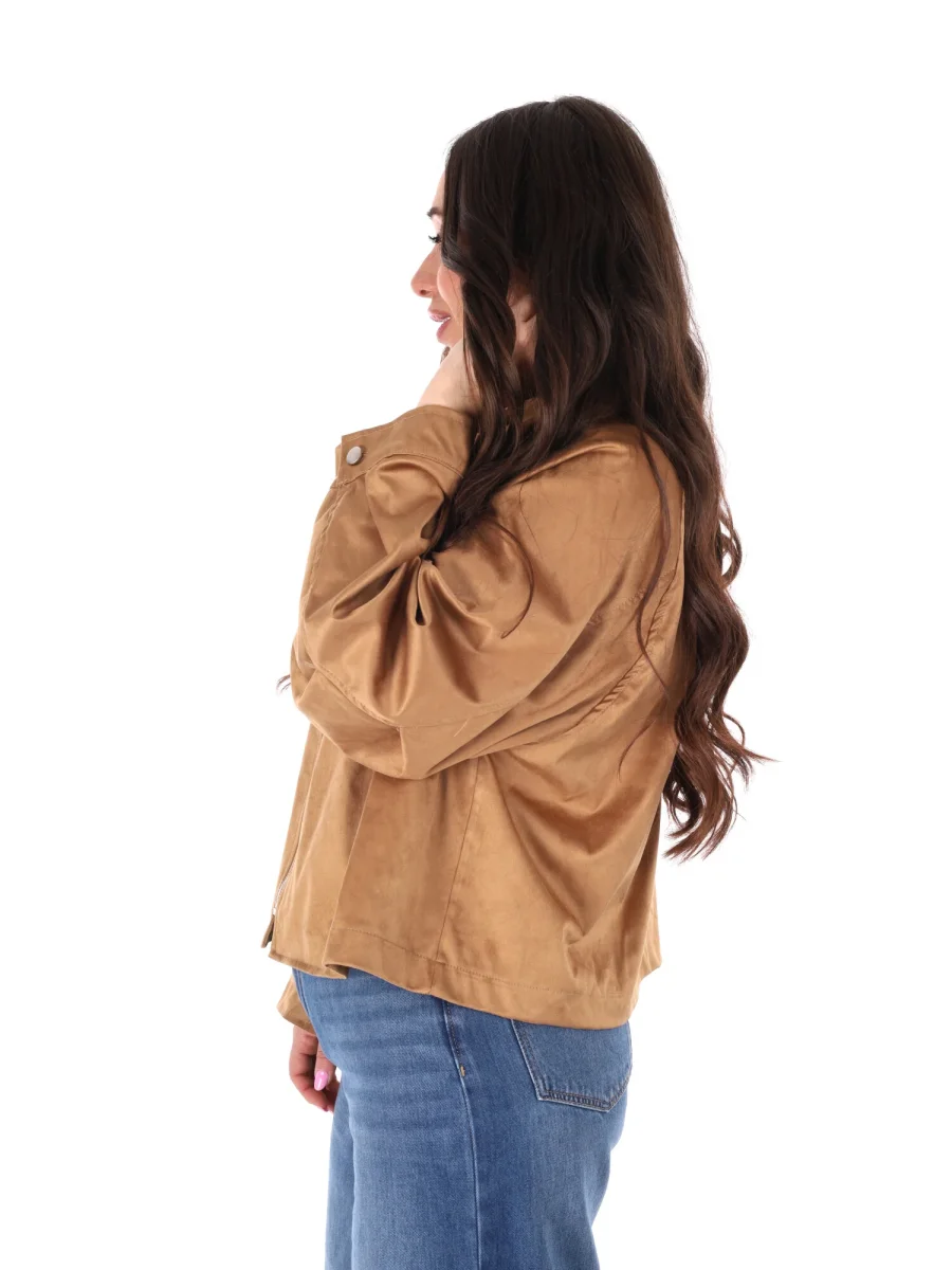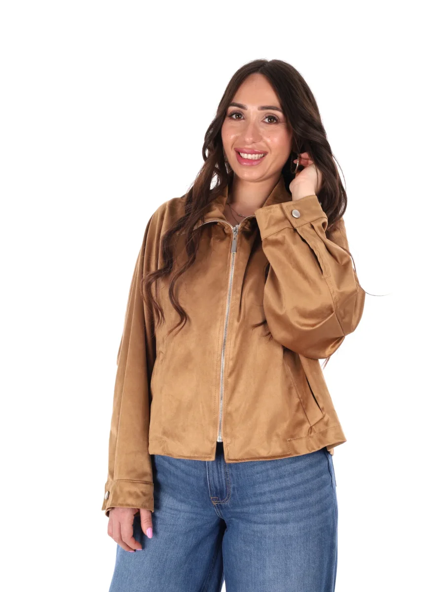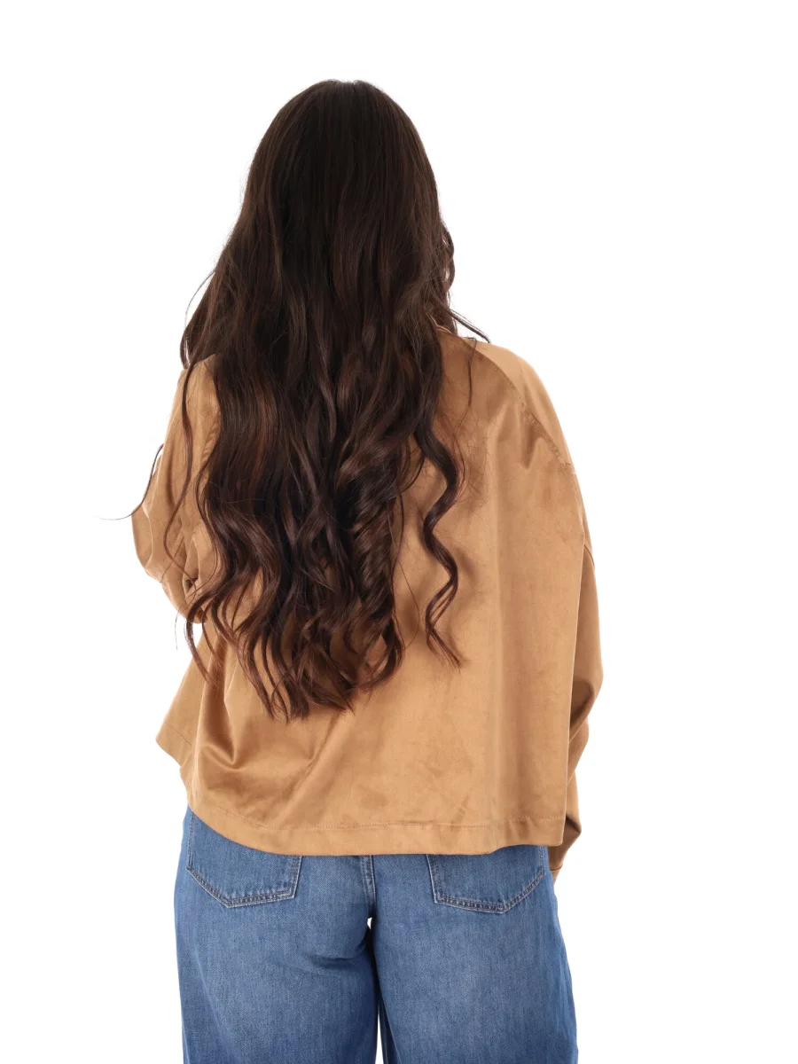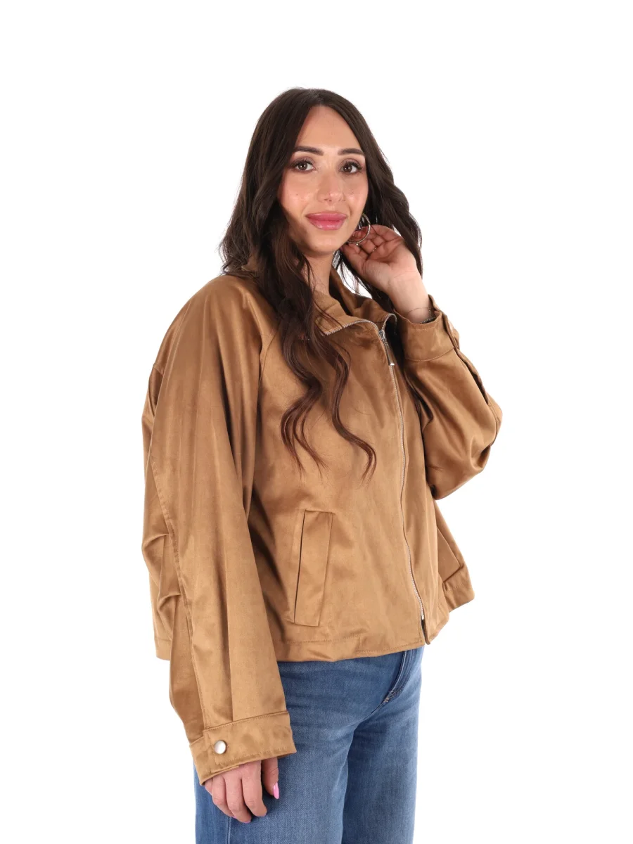 Giaccia da donna Miss Love della collezione Primavera/Estate, realizzata in morbido scamosciato effetto renna, un capo che unisce stile e comfort con un fascino naturale e sofisticato. La vestibilità loose conferisce libertà di movimento e un look rilassato ma curato, perfetto per chi ama sentirsi elegante senza rinunciare al comfort.