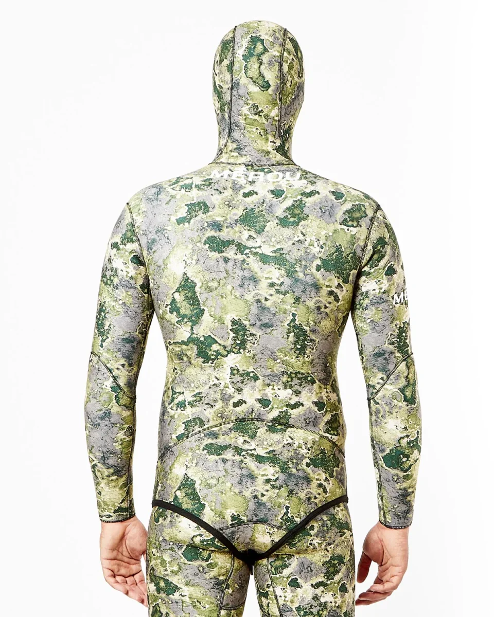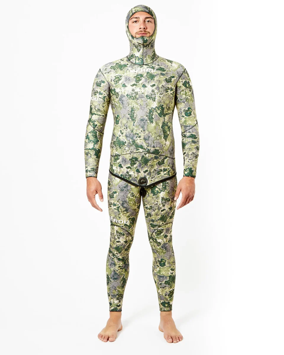 La Giacca Muta Mérou – Born Deep Commando è realizzata con neoprene Foderato/Spaccato mimetico. Ideata principalmente per la pesca in apnea è disponibile in tutte le varianti di spessore e in tre varianti di mimetico.
