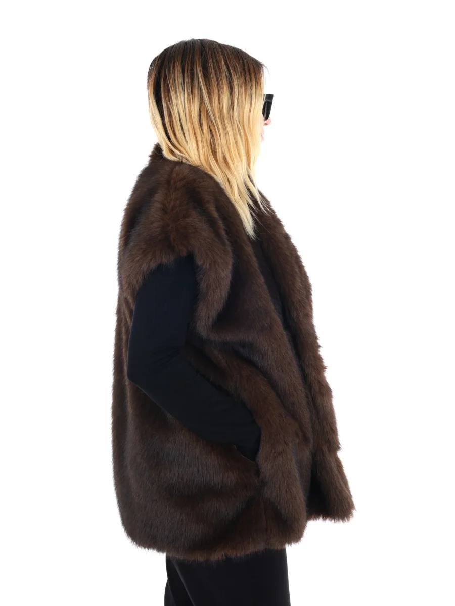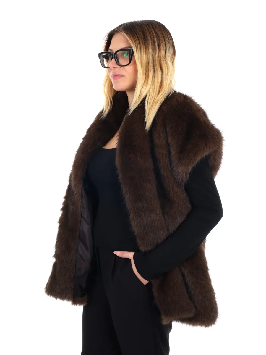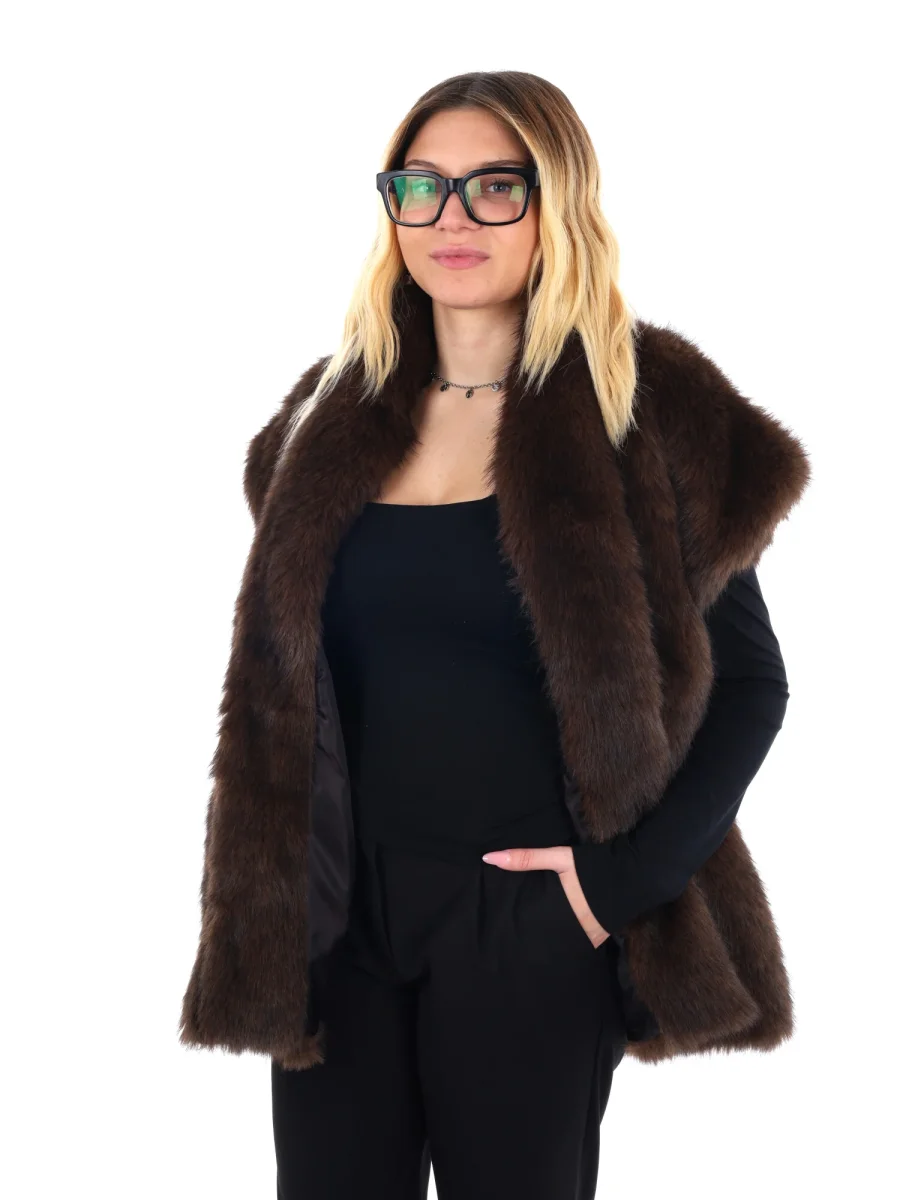 Il gilet giacca in ecopelliccia da donna Miss Love della collezione autunno/inverno è un capo che unisce eleganza e comfort in un unico look. La morbida ecopelliccia avvolge delicatamente, donando calore e una sensazione di lusso senza appesantire, mentre la vestibilità aperta senza chiusura lo rende versatile e facile da abbinare. Le due tasche laterali aggiungono funzionalità e un tocco di praticità, completando un design sofisticato ma quotidiano. Perfetto sopra maglie a manica lunga, camicie o dolcevita, il gilet Miss Love trasforma ogni outfit in un insieme raffinato, portando personalità e stile senza rinunciare alla comodità. Un capo iconico per affrontare la stagione fredda con eleganza naturale e versatilità.