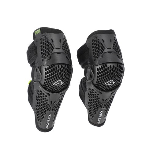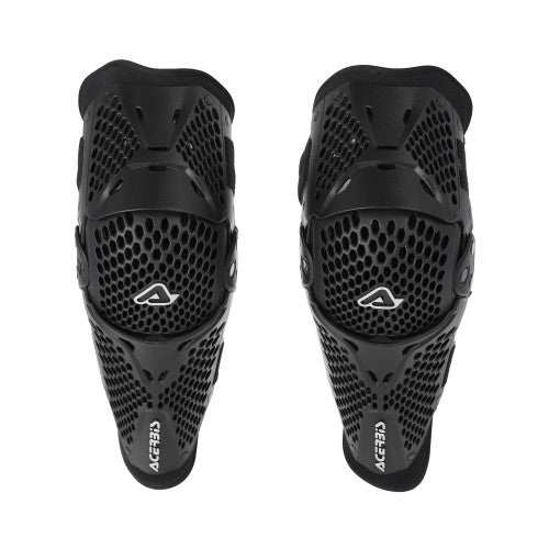 - Il doppio snodo sull’articolazione e il materiale plastico semirigido sono progettati per offrire una resistenza che soddisfa il livello 2 della certificazione, garantendo comfort e adattabilità al movimento del ginocchio durante la guida.