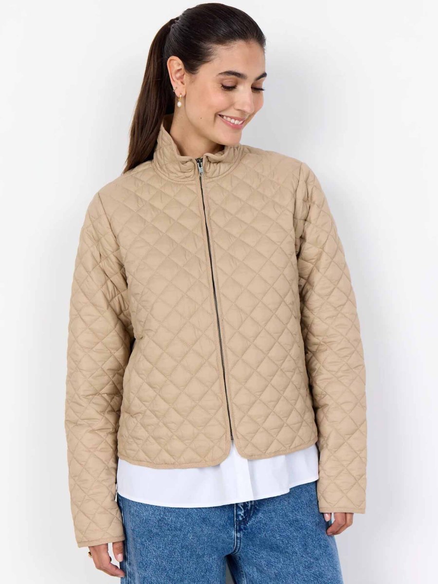 Il giubbino da donna Soya Concept, della collezione primavera/estate, è realizzato al 100% in nylon leggero e resistente. Caratterizzato da una texture trapuntata, collo alto, chiusura frontale con zip e due tasche anteriori, unisce funzionalità e stile per un look moderno e raffinato. Perfetto da indossare sopra t-shirt o bluse leggere, completa outfit casual chic con un tocco contemporaneo.