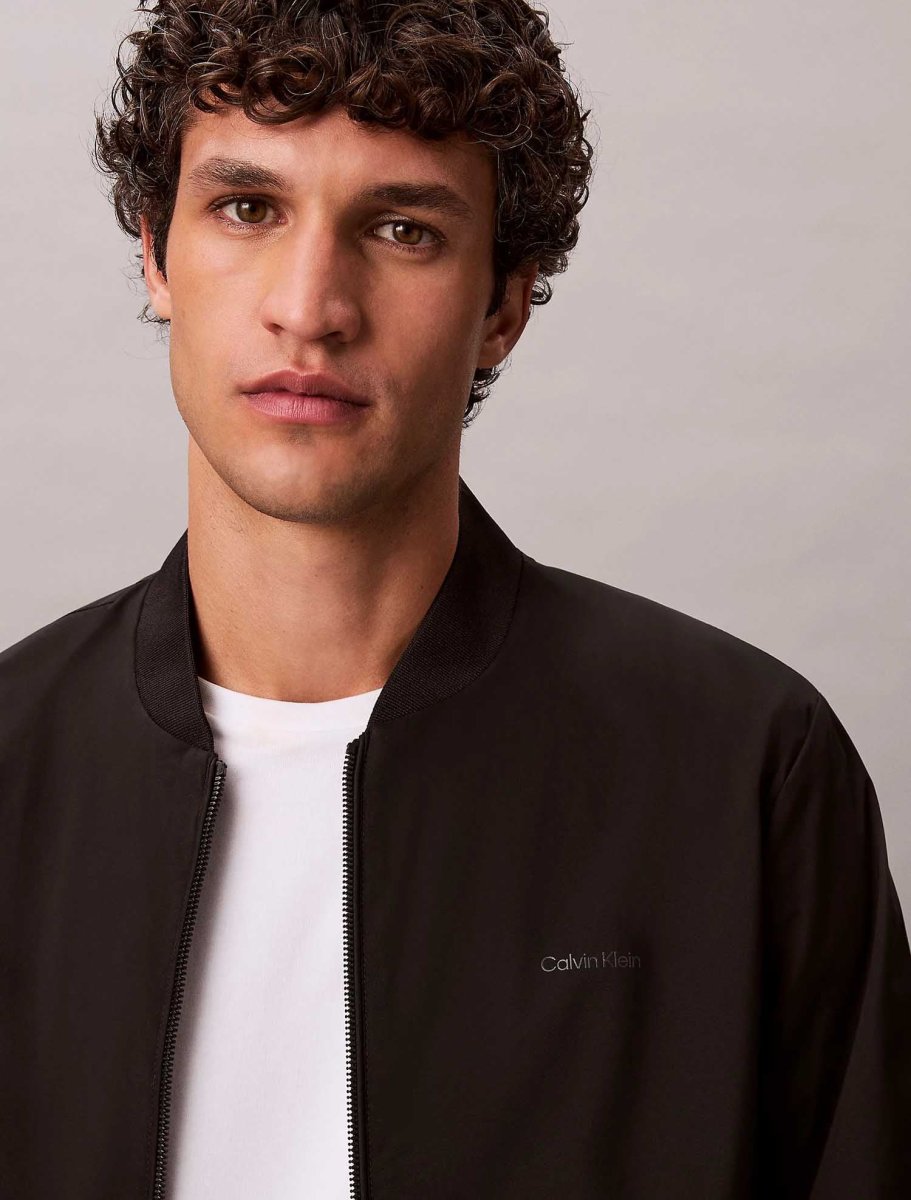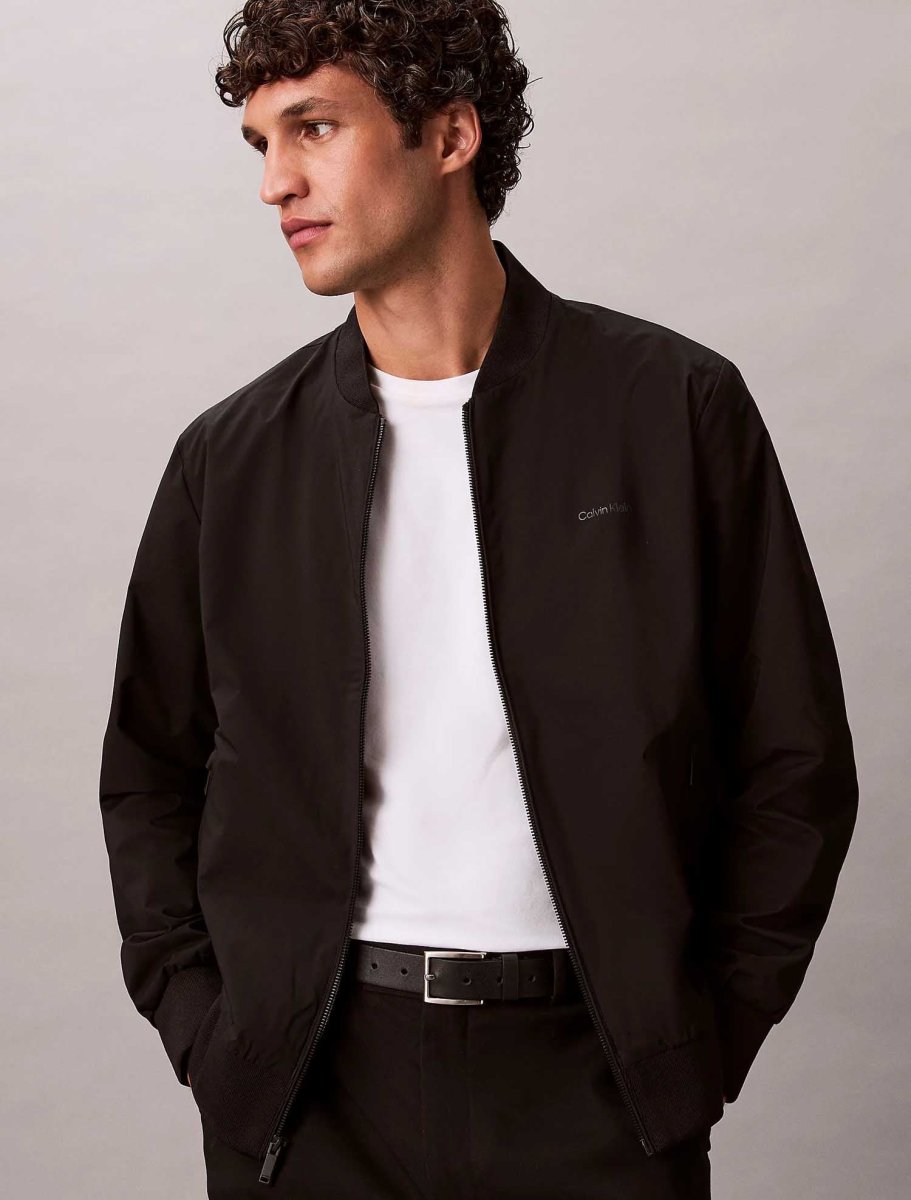 Giubbotto bomber da uomo Calvin Klein Jeans in poliestere tecnico, caratterizzato da finitura opaca e design contemporaneo. Il modello dal taglio regolare presenta colletto rialzato in maglia a costine, polsini e orlo coordinati, chiusura frontale con zip e tasche pratiche con zip in vita, garantendo funzionalità e comfort. La scritta del logo Calvin Klein sul petto aggiunge un dettaglio distintivo e minimalista, mentre le taglie più grandi disponibili lo rendono adatto a diverse silhouette. Perfetto per look casual moderni, combina stile, praticità e un tocco urbano contemporaneo.