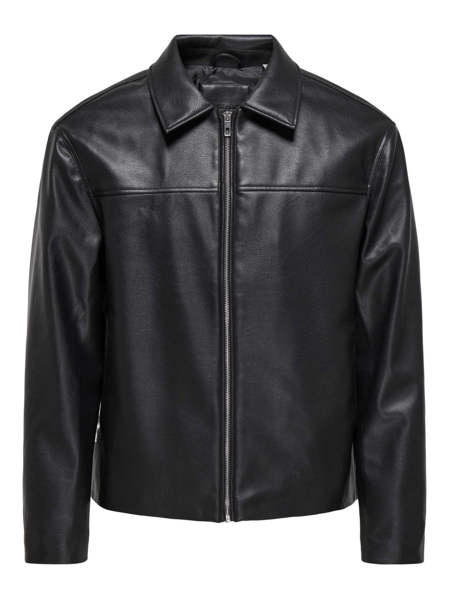 Giubbino Only & Sons in ecopelle nero da uomo con zip