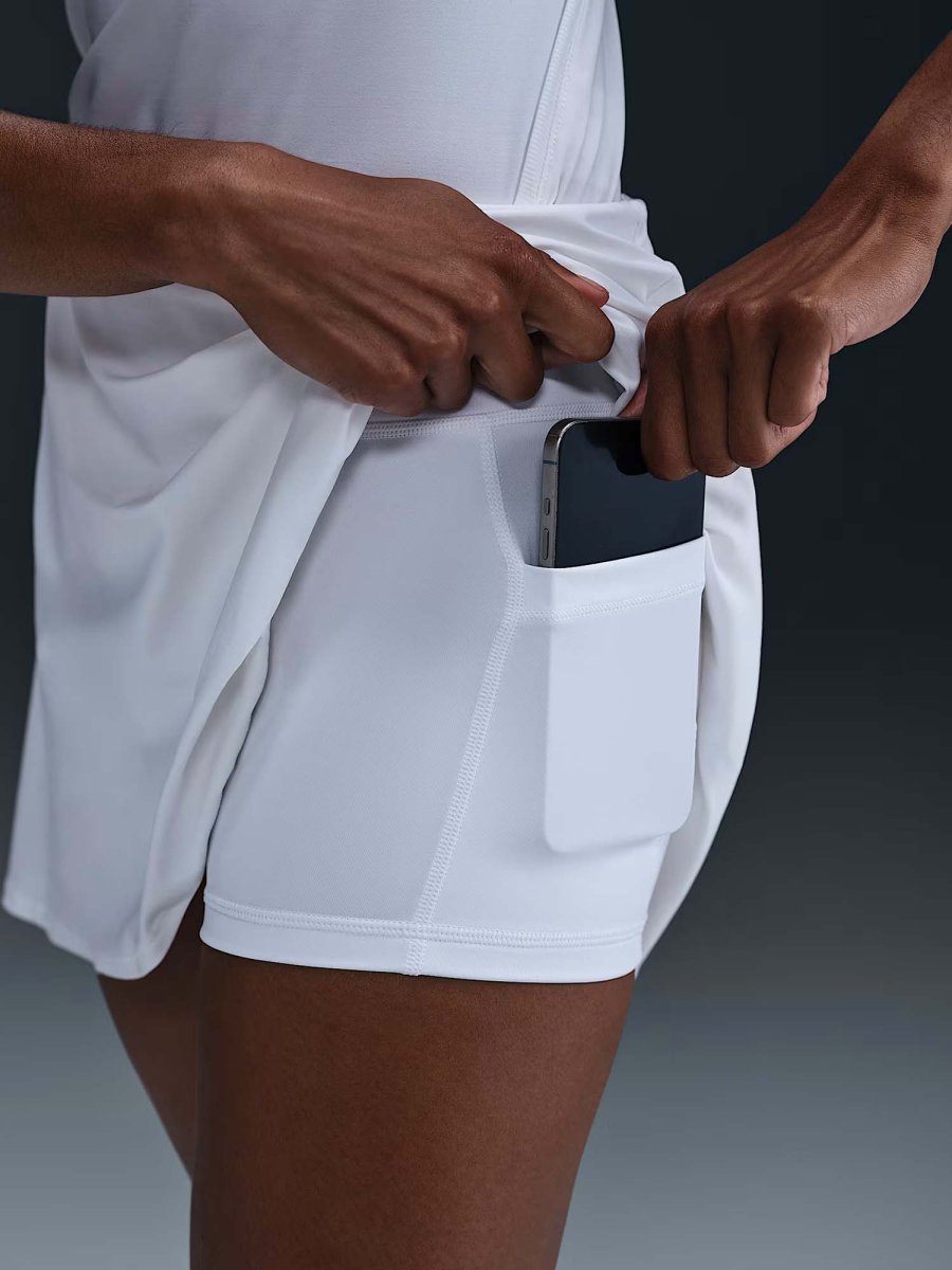 Questa gonna a balze da donna Nike, parte della collezione primavera/estate, è realizzata in un tessuto ultramorbido, altamente elasticizzato e ad asciugatura rapida, pensato per offrirti libertà di movimento e massimo comfort durante ogni match. La tecnologia Nike Dri-FIT allontana il sudore dalla pelle e ne favorisce l’evaporazione, mantenendoti asciutta e concentrata sul gioco. Gli shorts integrati con tasche offrono copertura in ogni posizione e pratici spazi per gli oggetti essenziali, come lo smartphone o le palline da tennis. Versatile e performante, questa gonna unisce funzionalità e stile sportivo in un capo perfetto per affrontare anche le giornate più intense in campo.