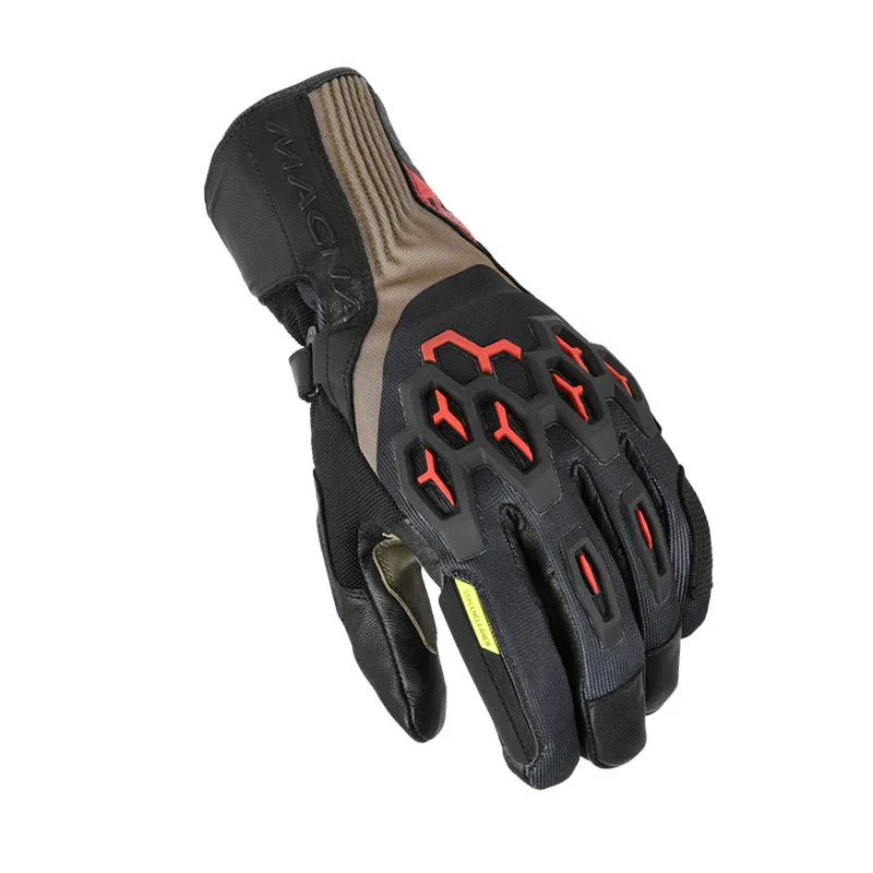 Il Brawler è composto da pelle di capra, pelle di mucca e tessuto morbido e flessibile. Il palmo è realizzato in pelle e rinforzato con uno strato extra per aumentare la resistenza all’abrasione. Abbiamo scelto il tessuto flessibile sul retro con rinforzo in pelle sulla punta delle dita. È dotato di fodera in tricot e membrana impermeabile Raintex, che lo rende adatto per condizioni di guida miti/piovose.