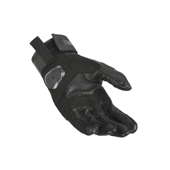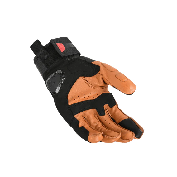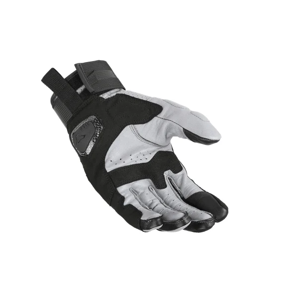 Un guanto a manica corta con schiuma di tempera sulle nocche e protezione in TPR sul palmo in pelle rinforzata, adatto ai cavalieri in condizioni di caldo.